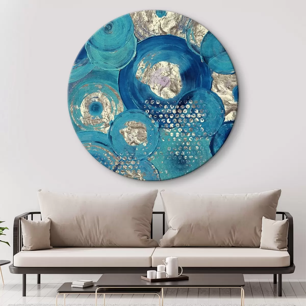 Runde Wandbilder Azurblaue Kreise mit goldenen Tupfen, Ölfarben r01035
