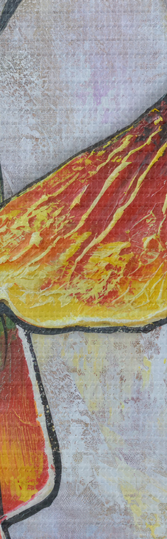 Um die Leinwand auf Keilrahmen zu spannen, ohne das Bild zu beschädigen, verwenden wir ein gespiegeltes Bild.