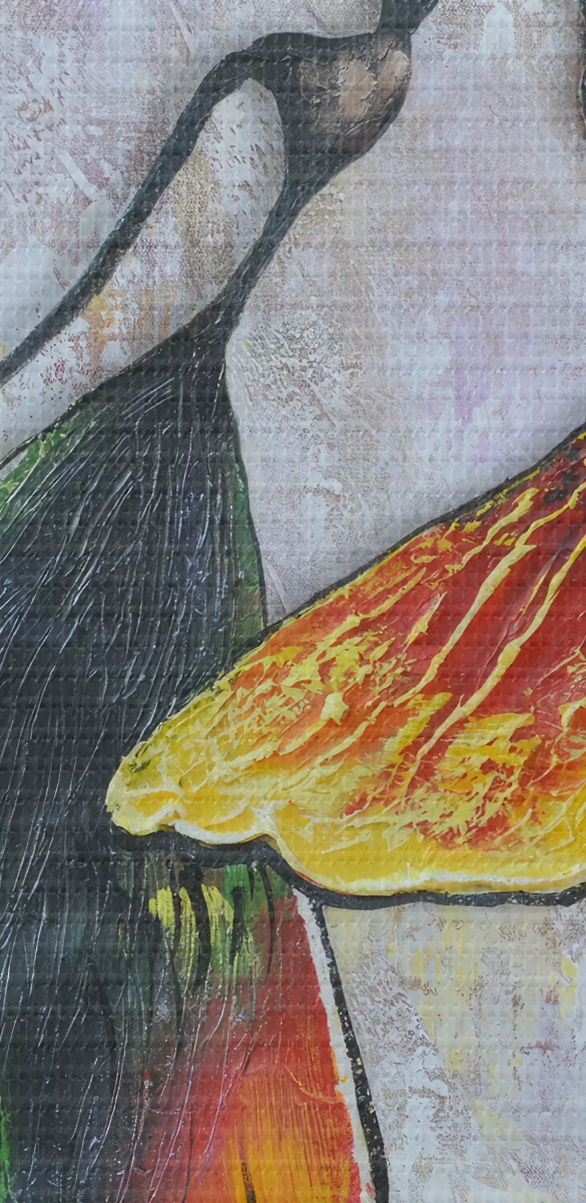 Drei Materialtypen stehen zur Verfügung: Economic Canvas - ein dichtes und haltbares Material für den Digitaldruck, identisch mit Malerleinwand, wasserfeste Oberfläche, realistische Wiedergabe von Details, mittelkörniges Material. Premium Canvas - die Textur ähnelt der einer Malerleinwand (verwobene kleine Fäden). Weiche, detaillierte Wiedergabe des Bildes auf einer matten Oberfläche. Eco-Premium - hochwertiges Gewebe aus 100% Baumwolle. Dank der natürlichen Baumwollfasern ist das Material langlebig und verschleißfest. Hervorragende Farbwiedergabe und Detailtreue.