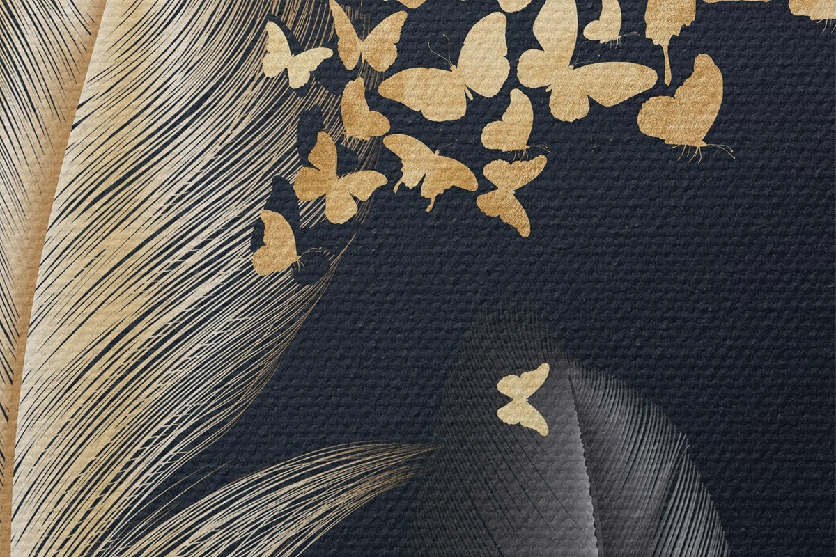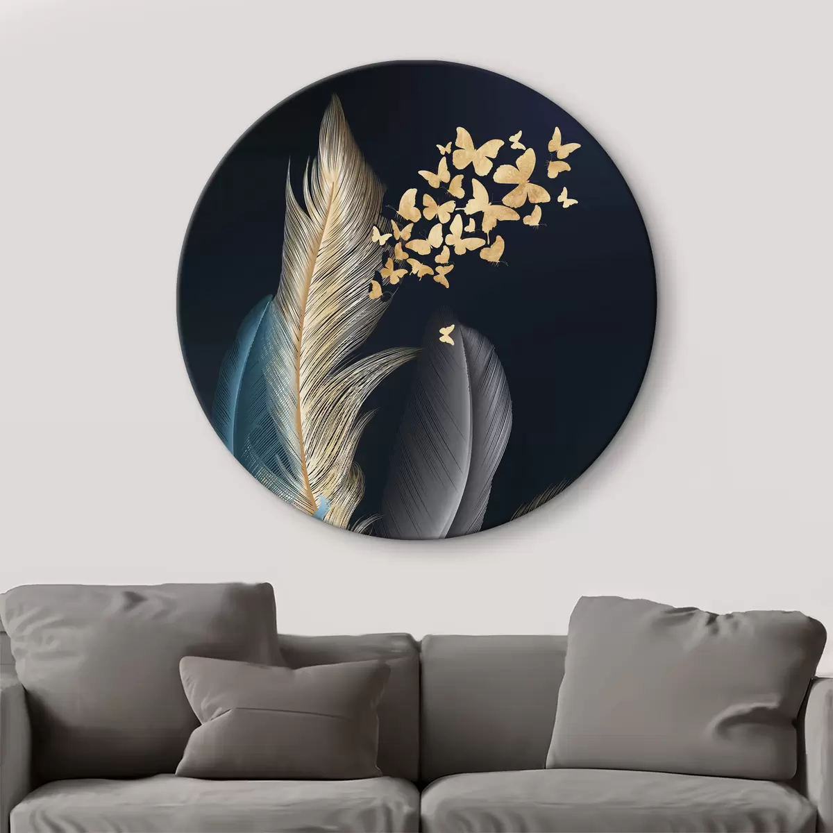 Runde Wandbilder Federn und Schmetterlinge Nr r03899