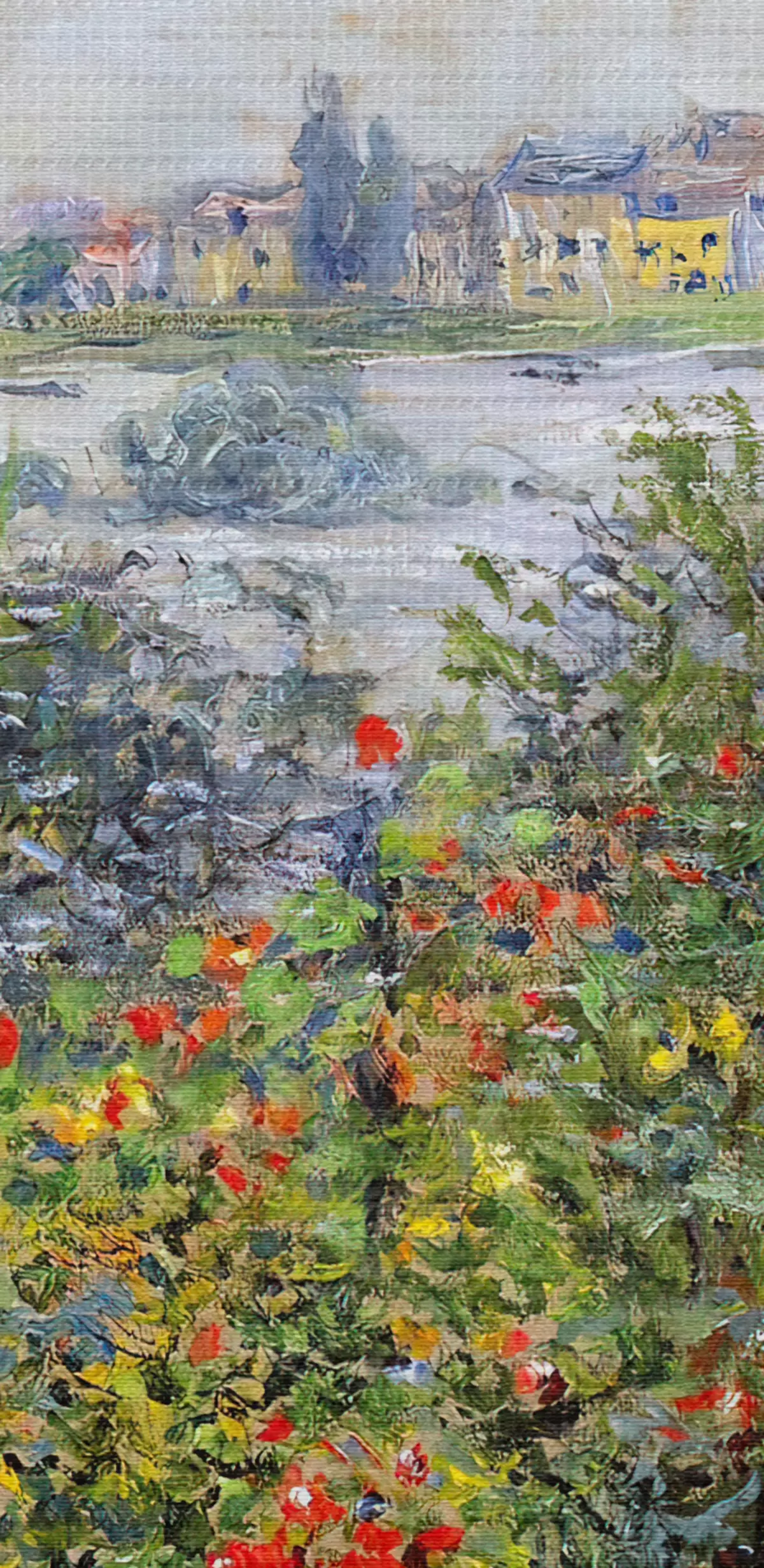 Das feine Fadengeflecht auf dieser Leinwand ähnelt der Oberfläche von professionellen Künstlerleinwänden.