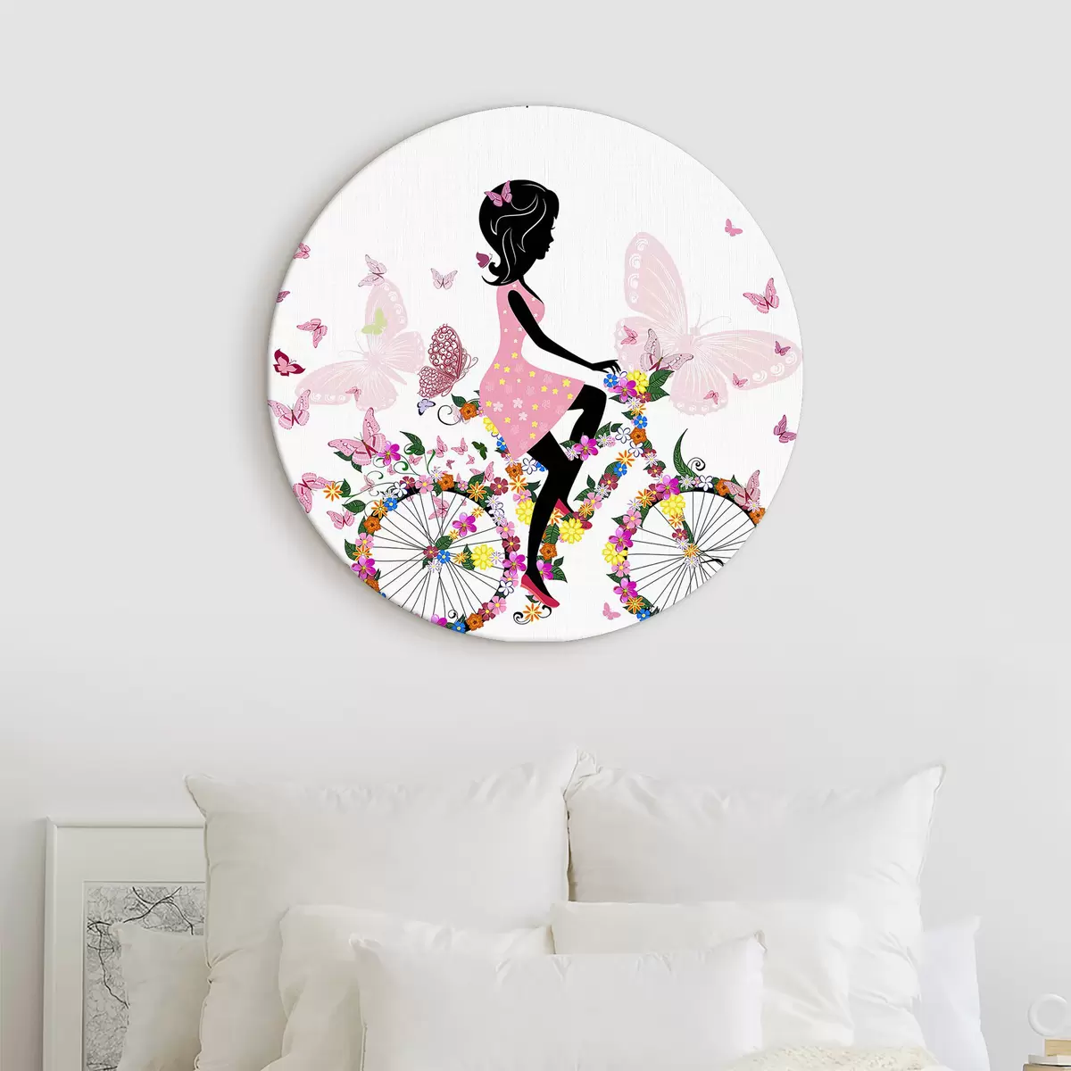 Runde Wandbilder Fahrrad, Mensch in der Natur und Blume r08603