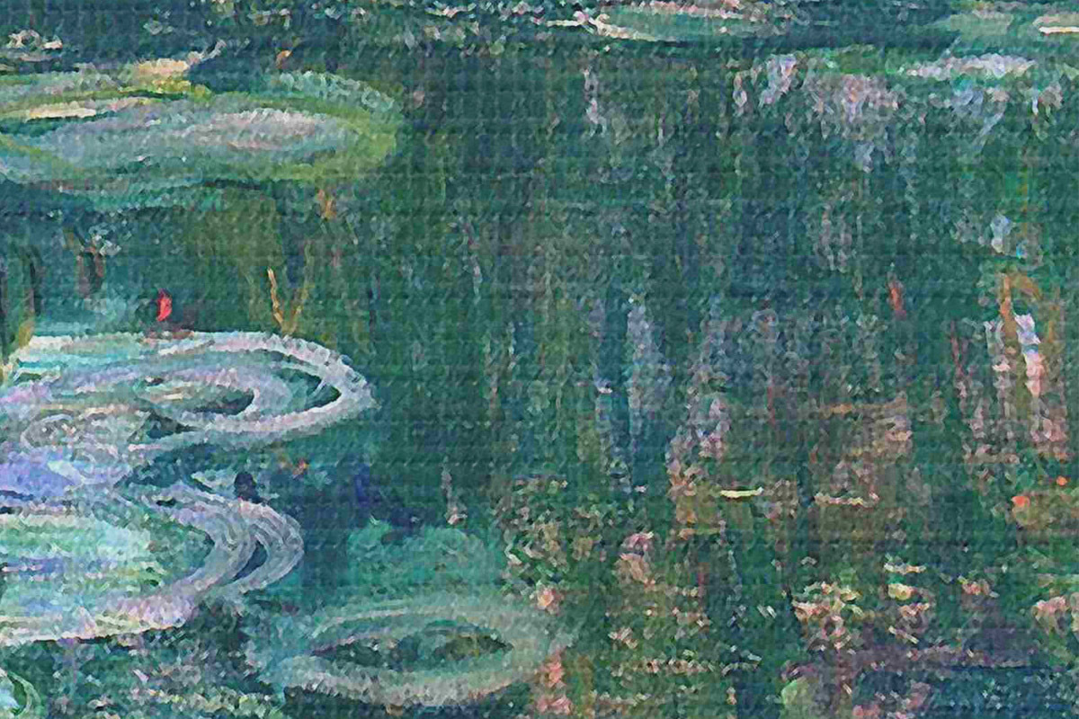 Um die Leinwand auf Keilrahmen zu spannen, ohne das Bild zu beschädigen, verwenden wir ein gespiegeltes Bild.