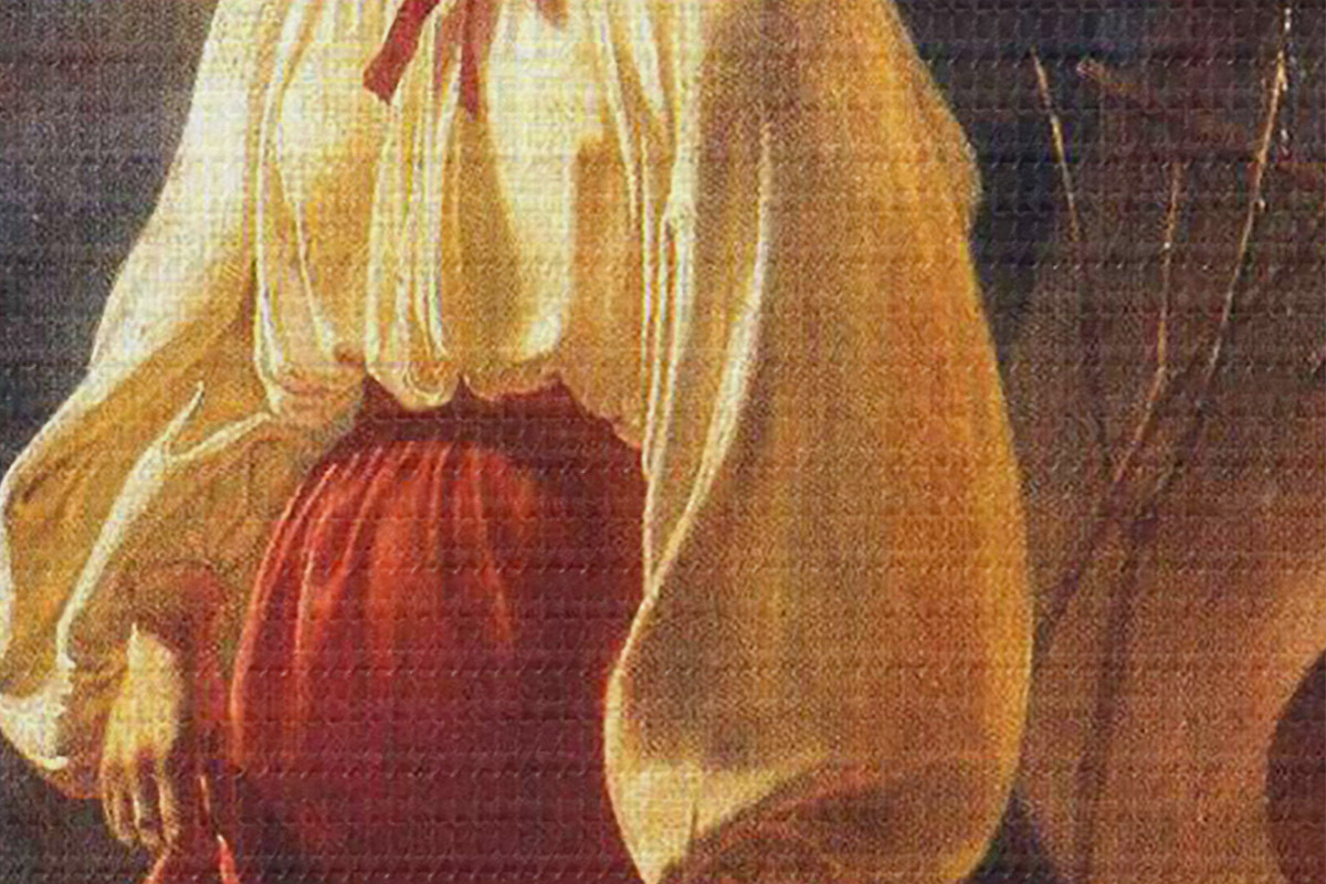 Das Bild kann vorsichtig mit einem trockenen, weichen Tuch oder Schwamm abgewischt werden; es wird nicht empfohlen, feuchte Produkte zu verwenden. Die Verwendung eines feuchten Schwamms ist nur zulässig, wenn das Bild lackiert wurde.