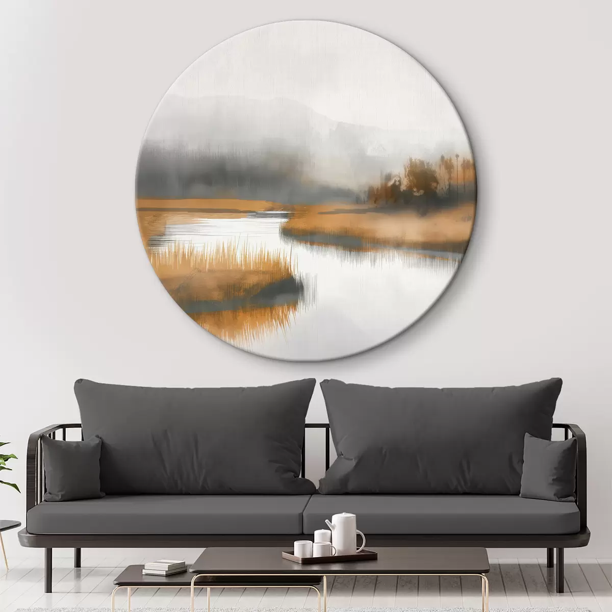 Runde Wandbilder Naturabstraktion in grau-orangefarbenen Farben r26132