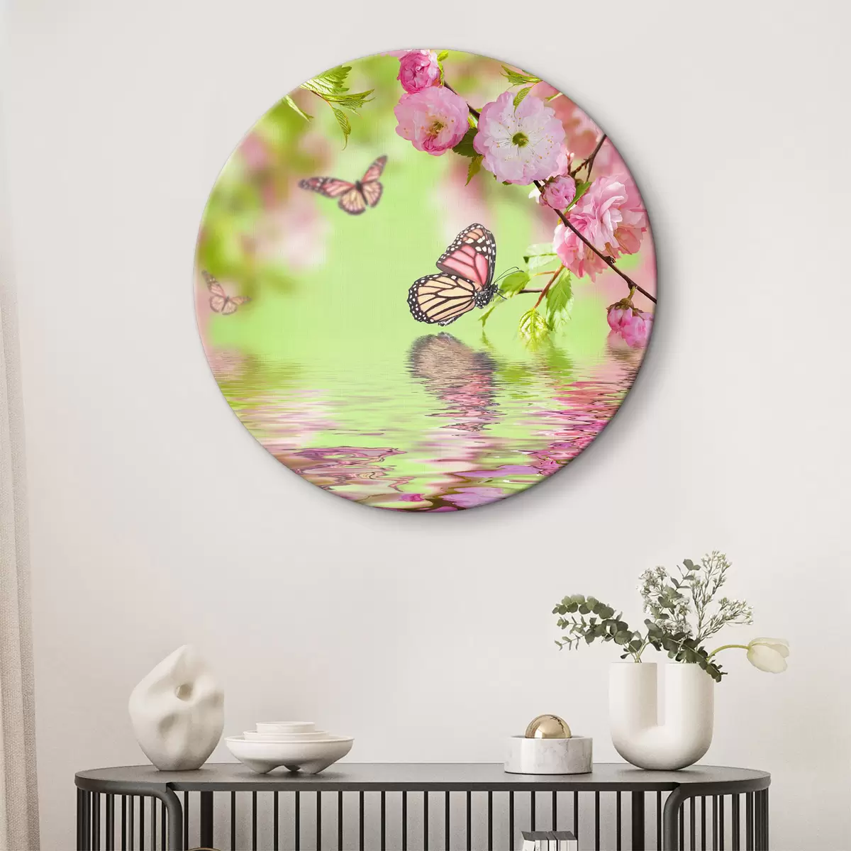 Runde Wandbilder Bestäuber, Blumen und Schmetterlinge r27029