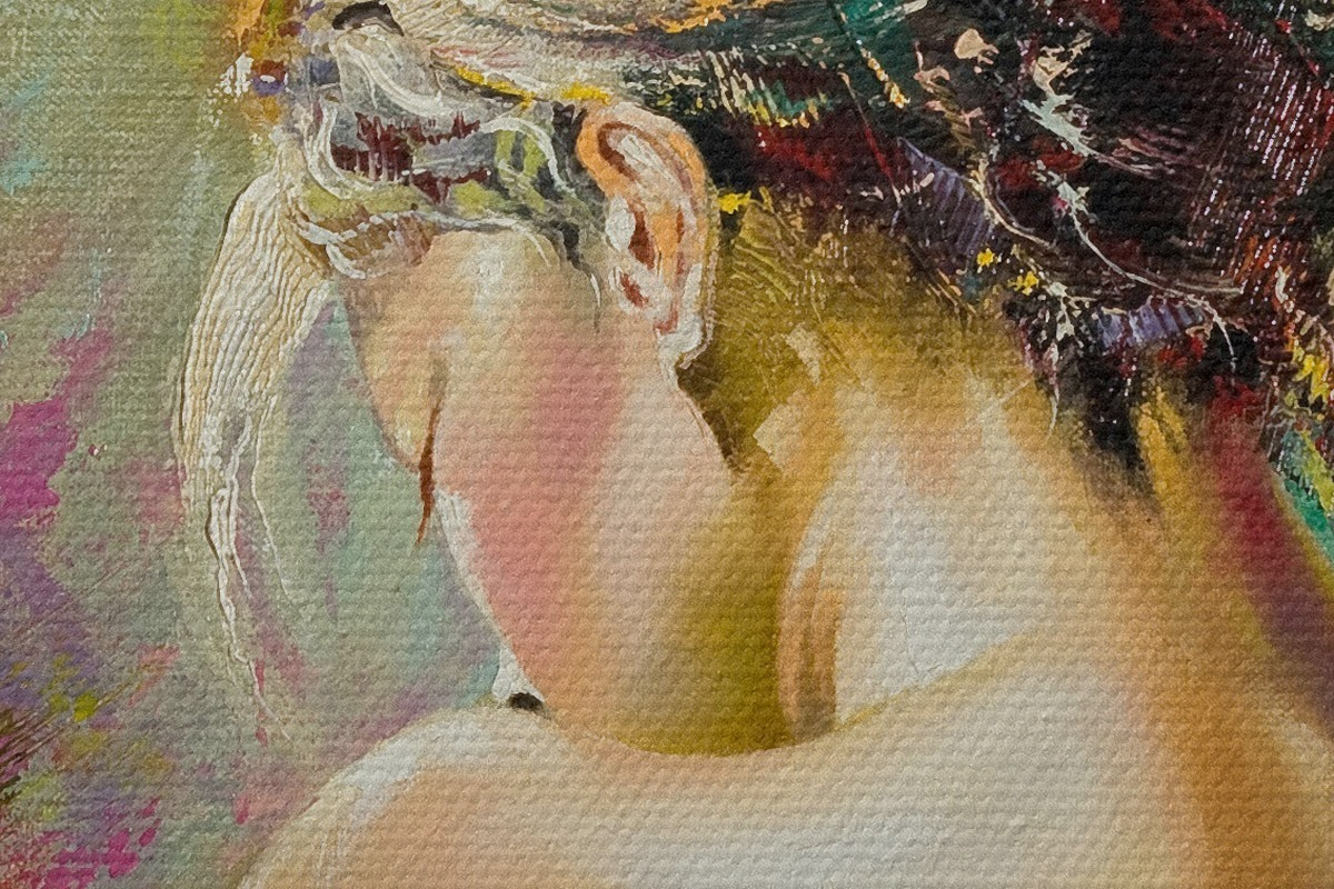 Das Gemälde kann sofort nach Erhalt aufgehängt werden. Das Gemälde wird auf einen 2 cm breiten Holzkeilrahmen aufgespannt.