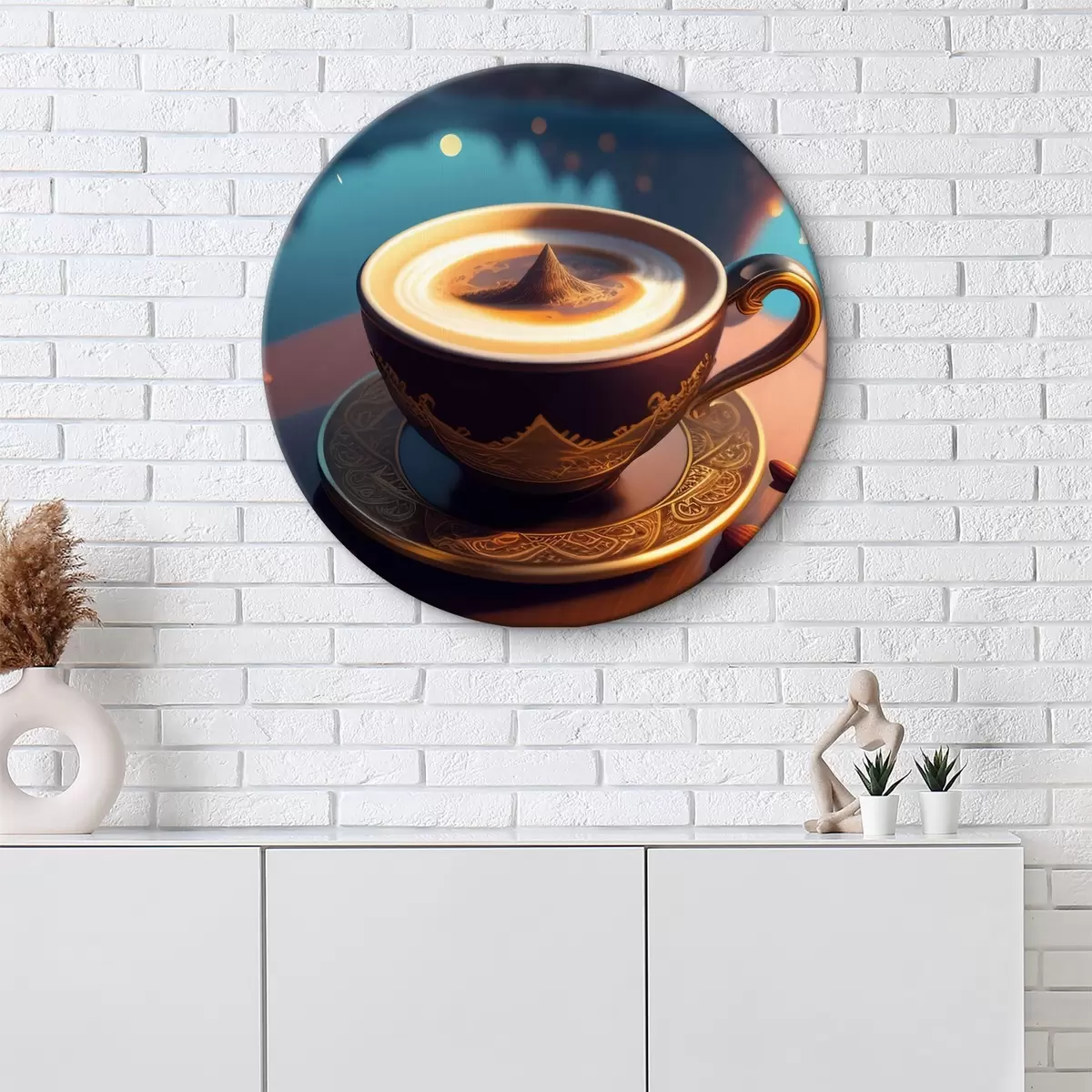 Runde Wandbilder Kaffee vor dem Hintergrund einer Berglandschaft Nr r32140