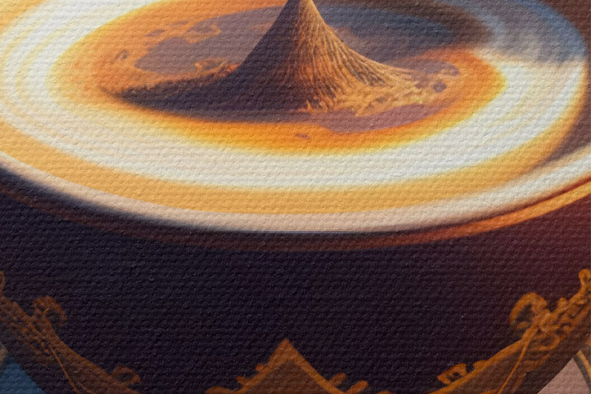 Um die Leinwand auf Keilrahmen zu spannen, ohne das Bild zu beschädigen, verwenden wir ein gespiegeltes Bild.