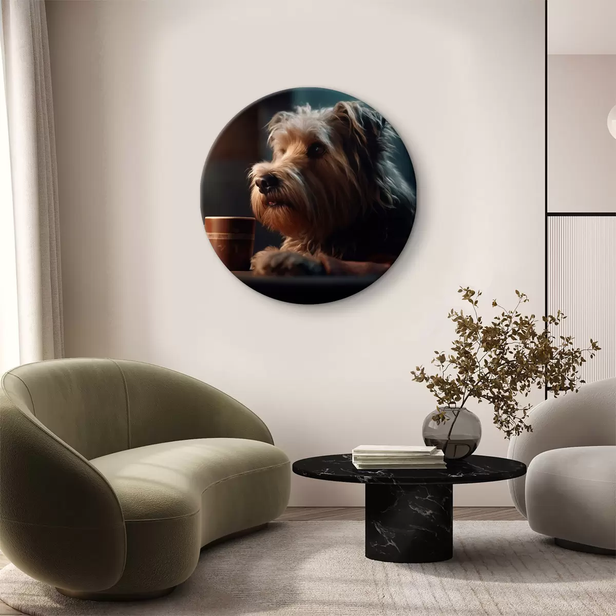 Runde Wandbilder Eine Tasse Tee und ein Hund Nr r32153