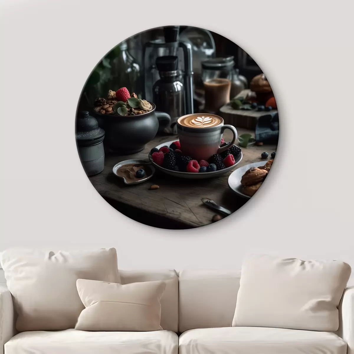 Runde Wandbilder Gesundes Frühstück mit Cappuccino Nr r32154
