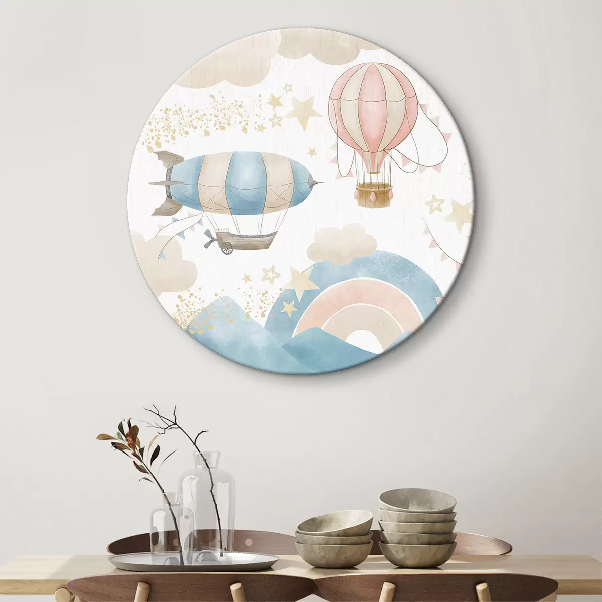 Runde Wandbilder Heißluftballons mit Wolken und Regenbogen Nr r32431