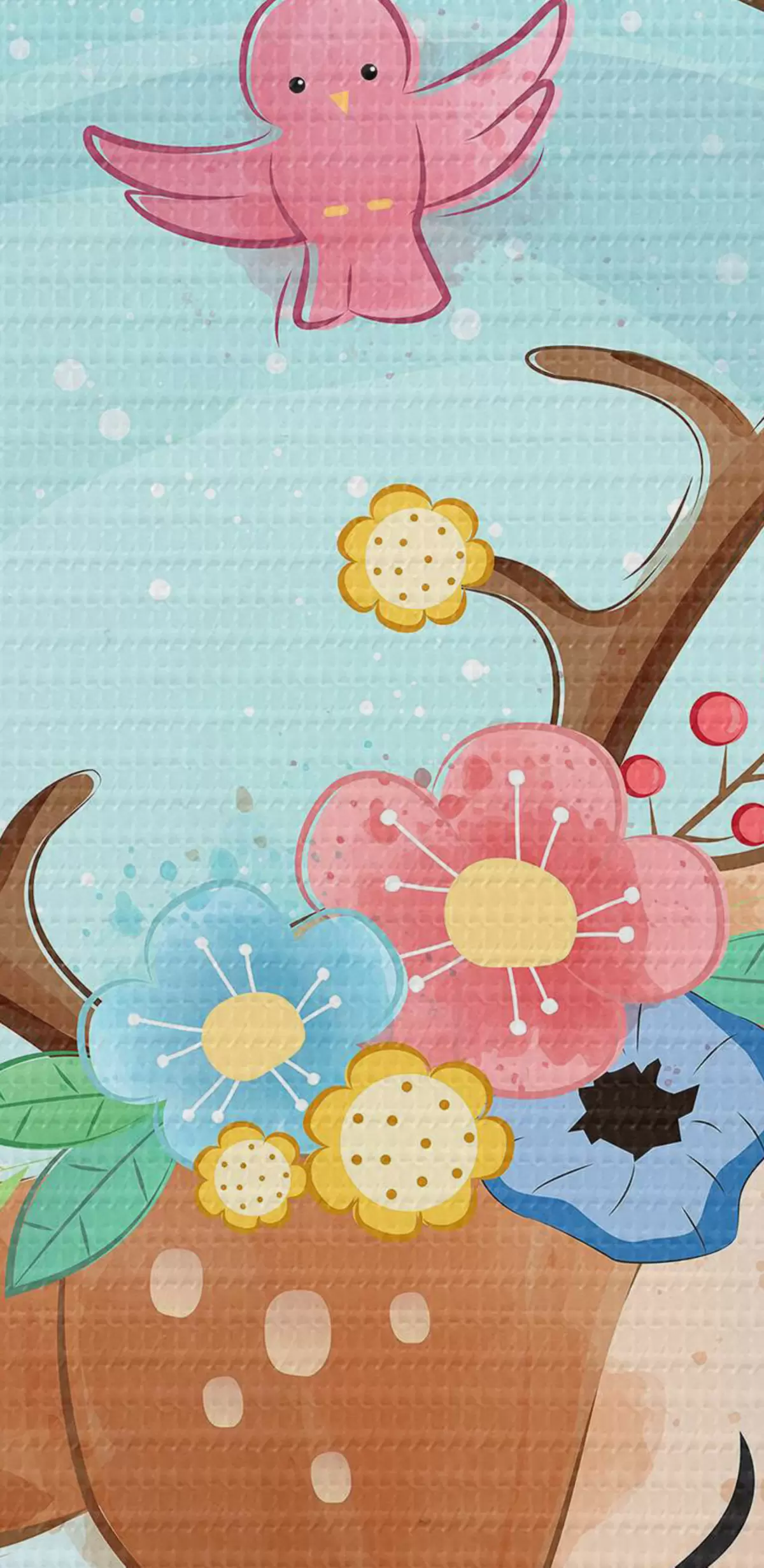 Runde Wandbilder Niedliche Hirsche mit Blumen Nr r32795