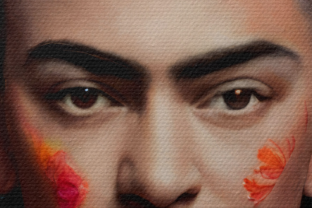 Um die Leinwand auf Keilrahmen zu spannen, ohne das Bild zu beschädigen, verwenden wir ein gespiegeltes Bild.