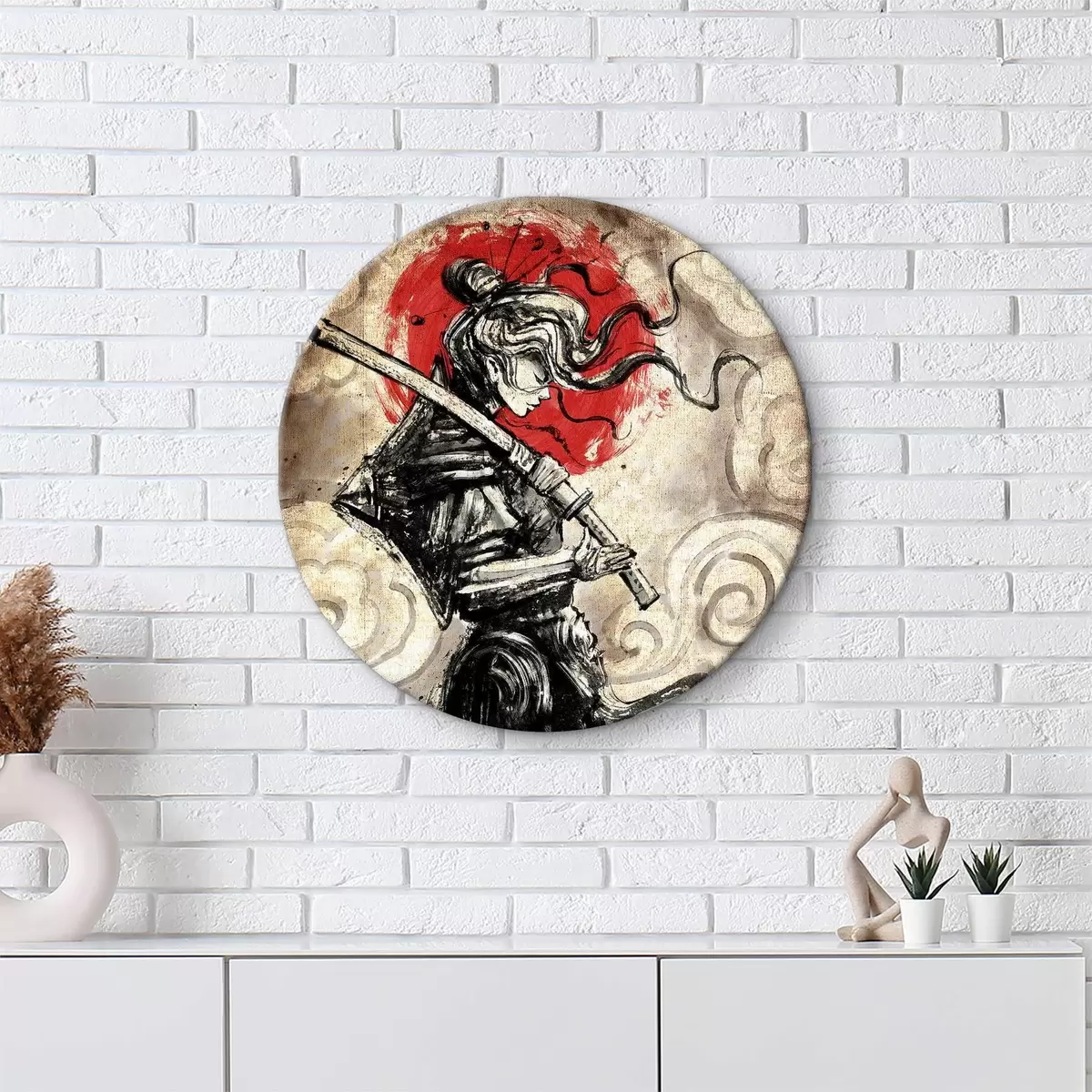 Runde Wandbilder Schönes Samurai-Mädchen mit einem Katana auf der Schulter Nr r33060