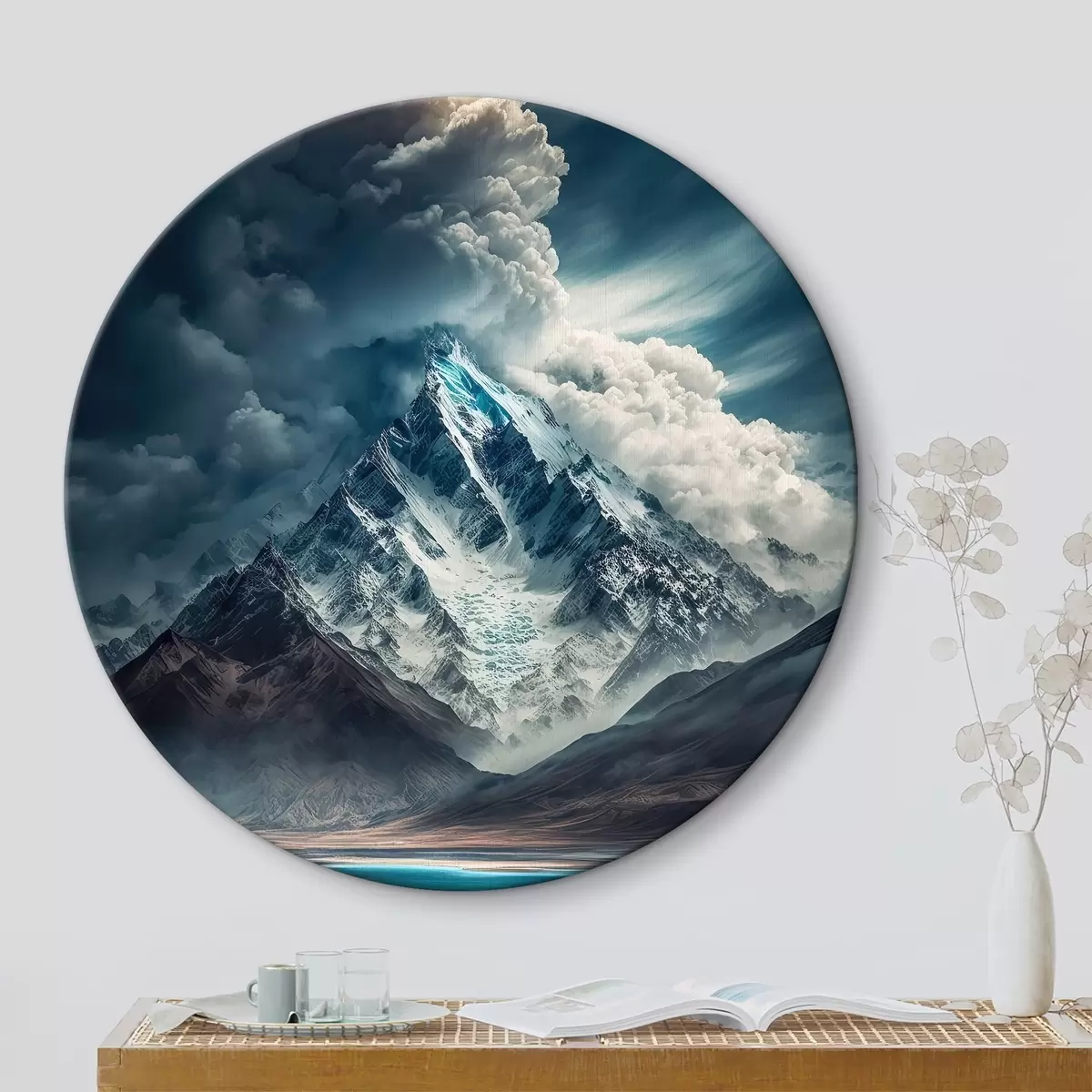 Runde Wandbilder Berge, See und massive Wolken Nr r33082