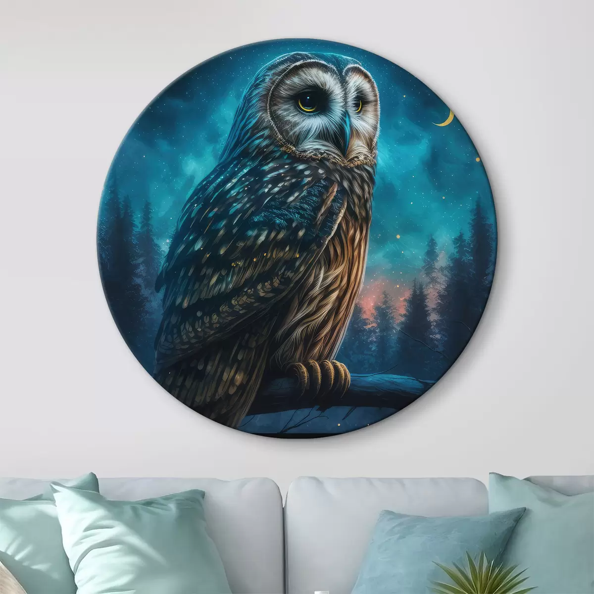 Runde Wandbilder Eule im nächtlichen Wald r33544