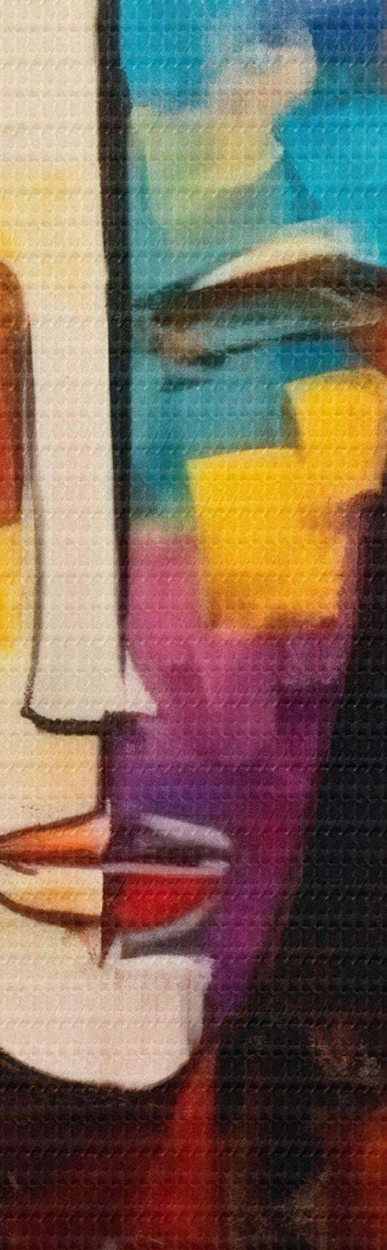 Das feine Fadengeflecht auf dieser Leinwand ähnelt der Oberfläche von professionellen Künstlerleinwänden.