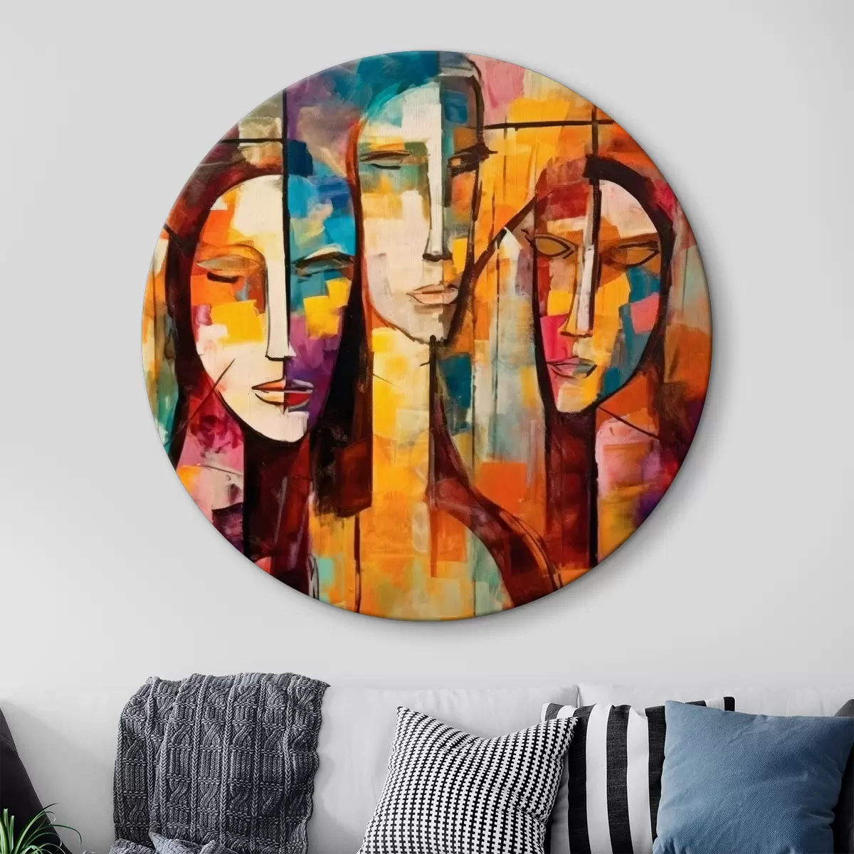 Runde Wandbilder 3 surreale Gesichter in leuchtenden Orange-Tönen r33845