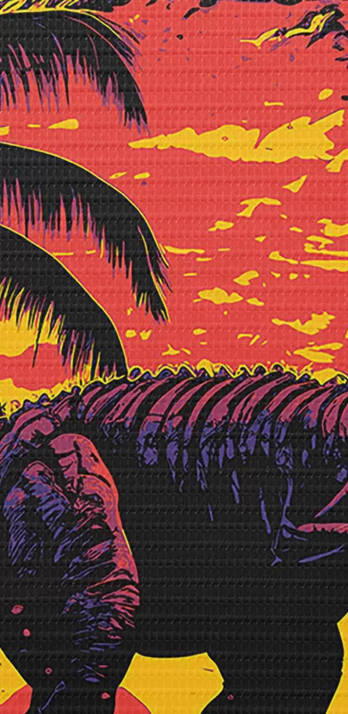 Runde Wandbilder Dinosaurier bei Sonnenuntergang in den Palmen Nr r33894