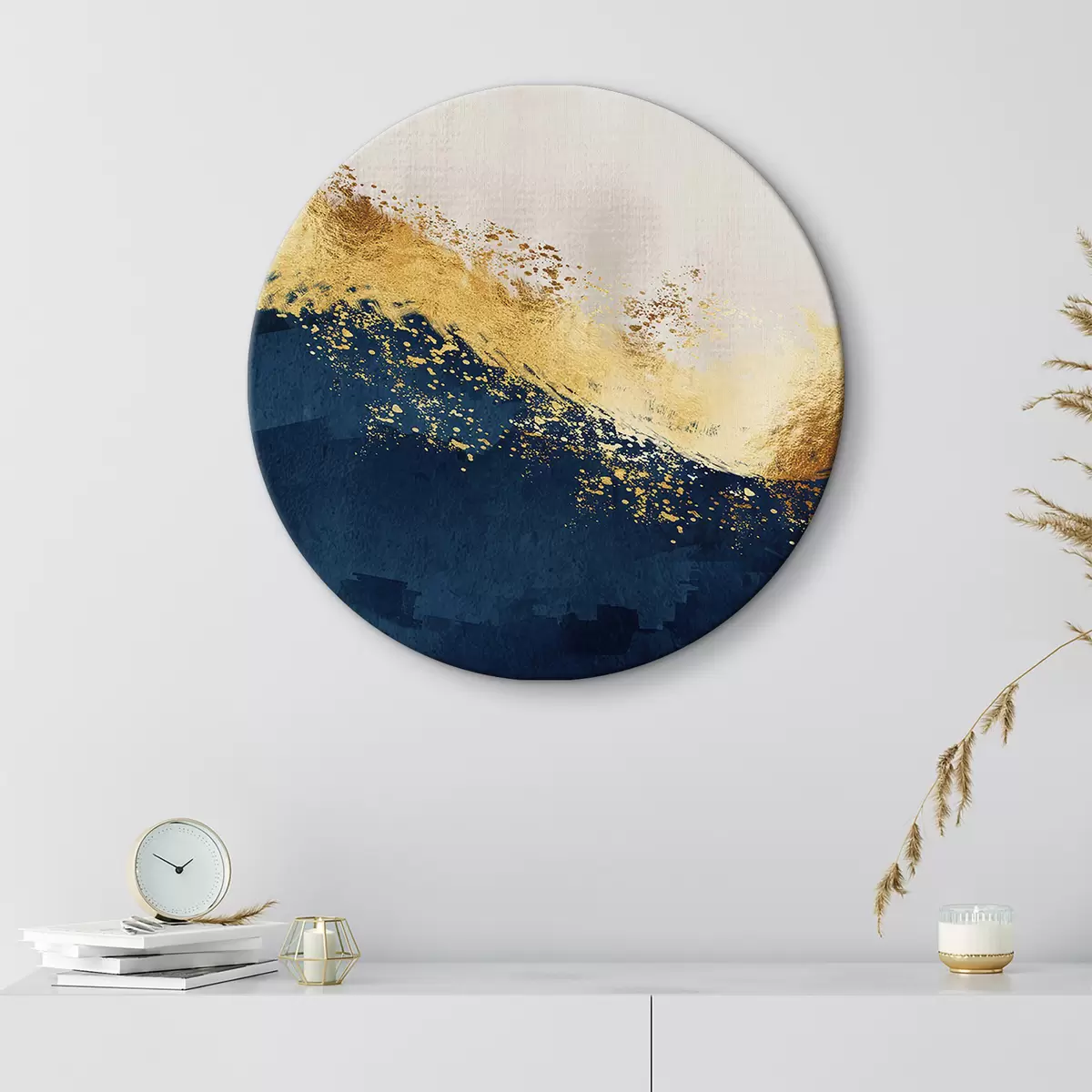 Runde Wandbilder weiß mit gold auf blau Nr r34212