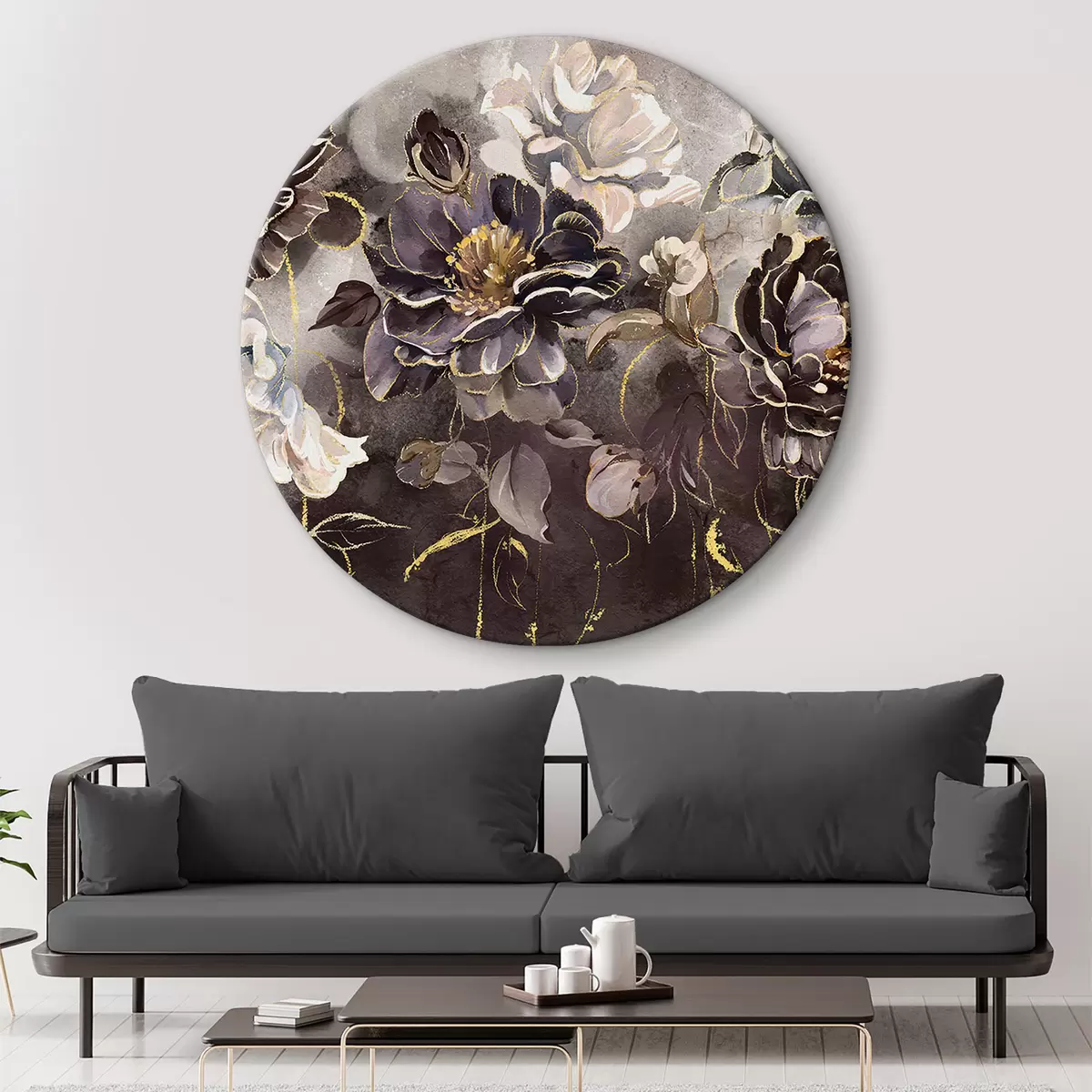 Runde Wandbilder Ölgemälde mit Rosenblüten, Blättern r34594