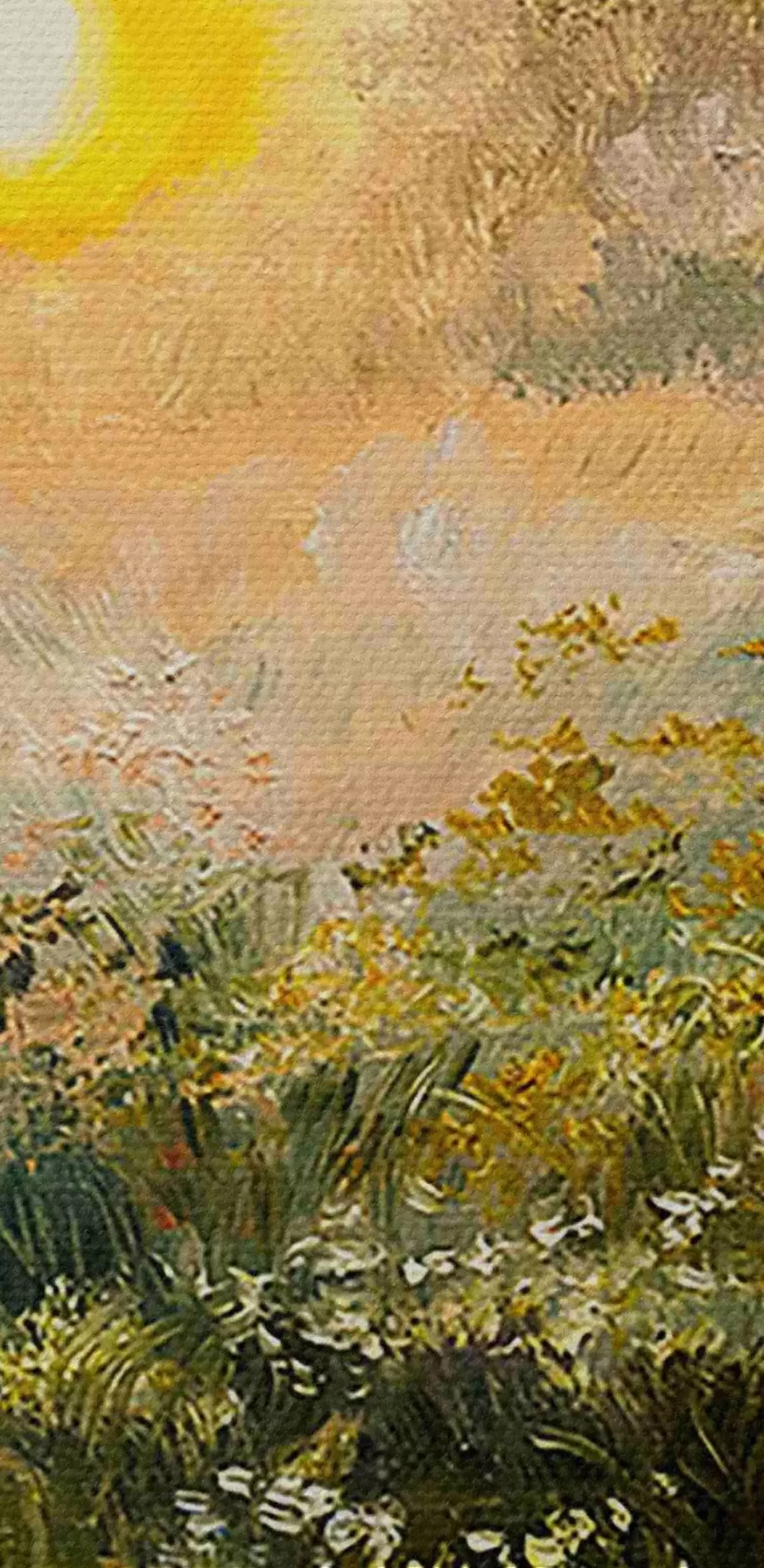 Das Gemälde kann sofort nach Erhalt aufgehängt werden. Das Gemälde wird auf einen 2 cm breiten Holzkeilrahmen aufgespannt.