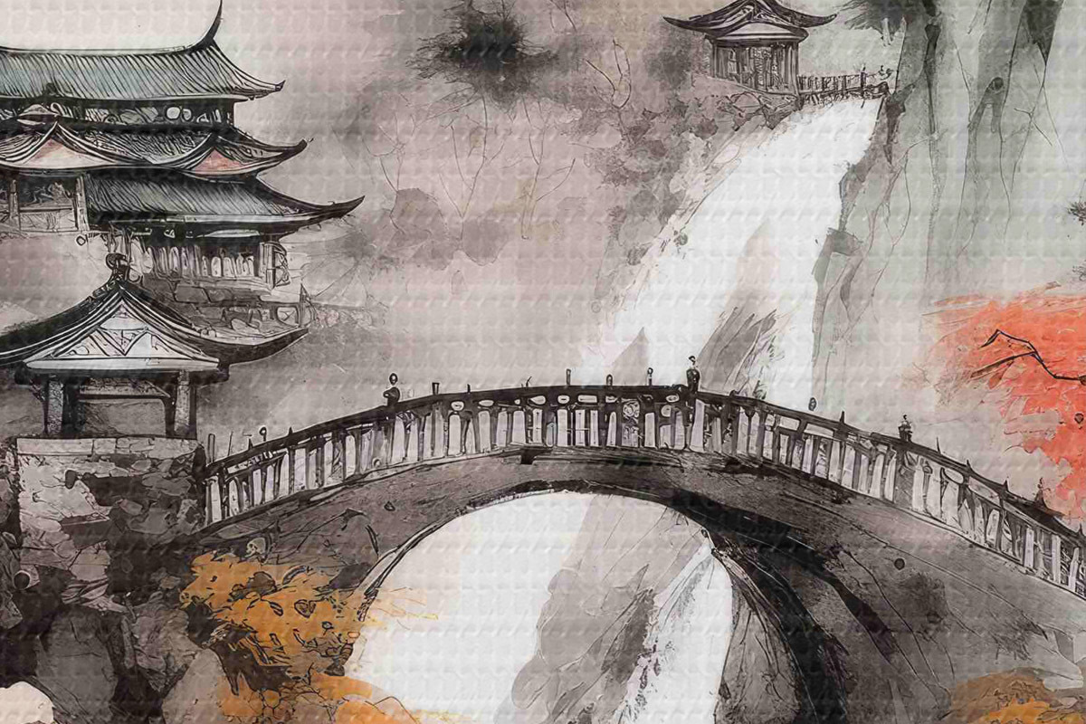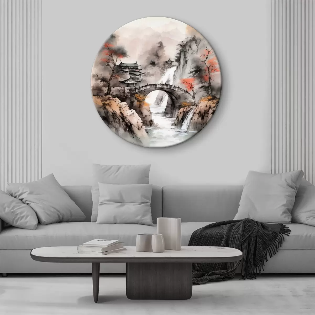 Runde Wandbilder Chinesische Landschaft mit einer Brücke Nr r34627