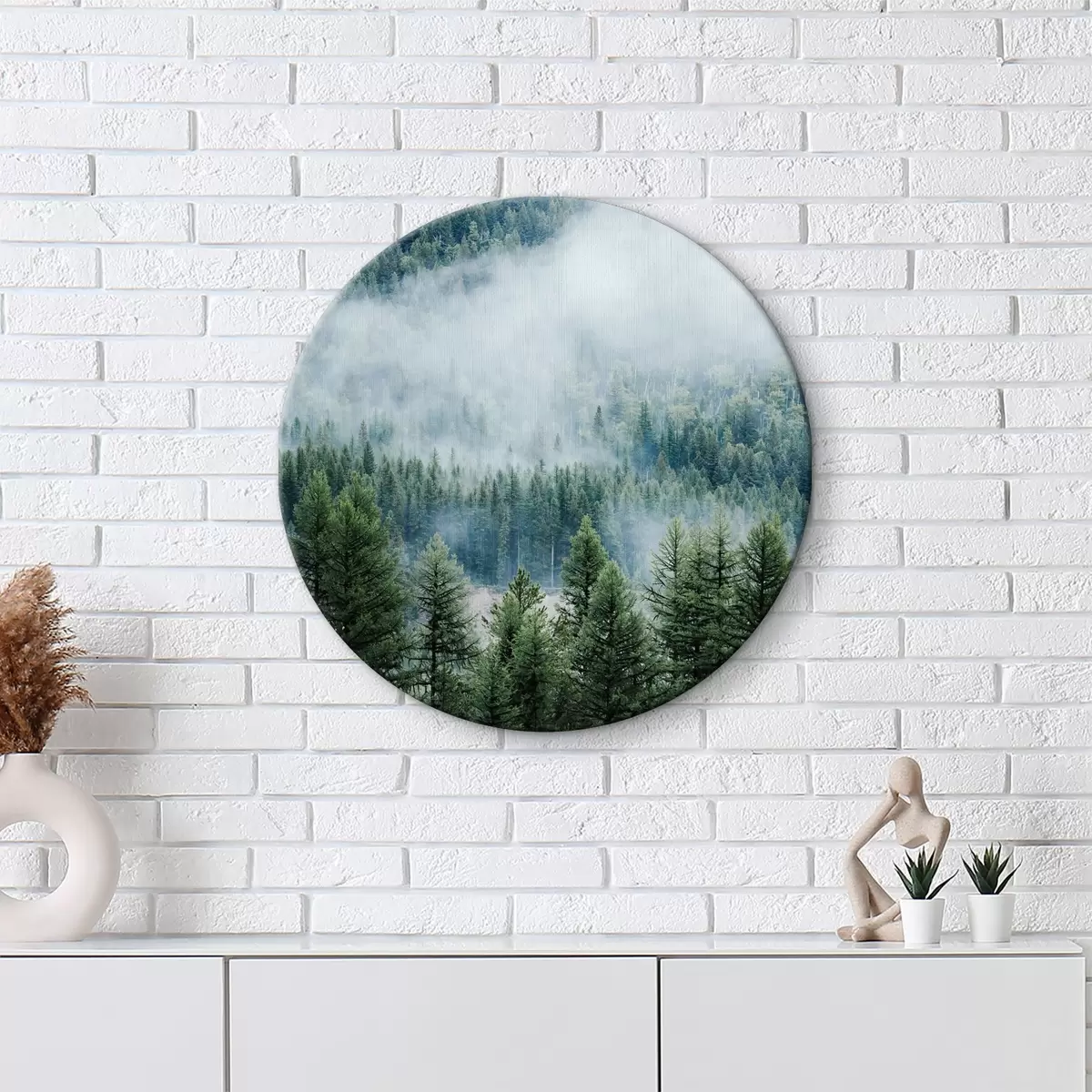 Runde Wandbilder Nadelwald im Nebel Nr r34825