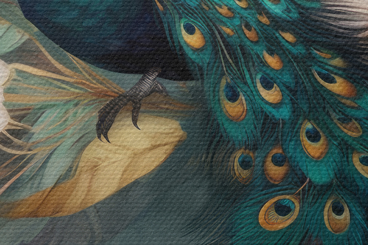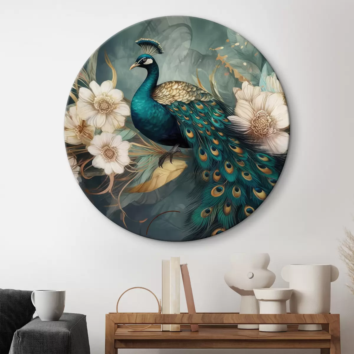 Runde Wandbilder Ein schöner Pfau auf einem blühenden Zweig Nr r34866