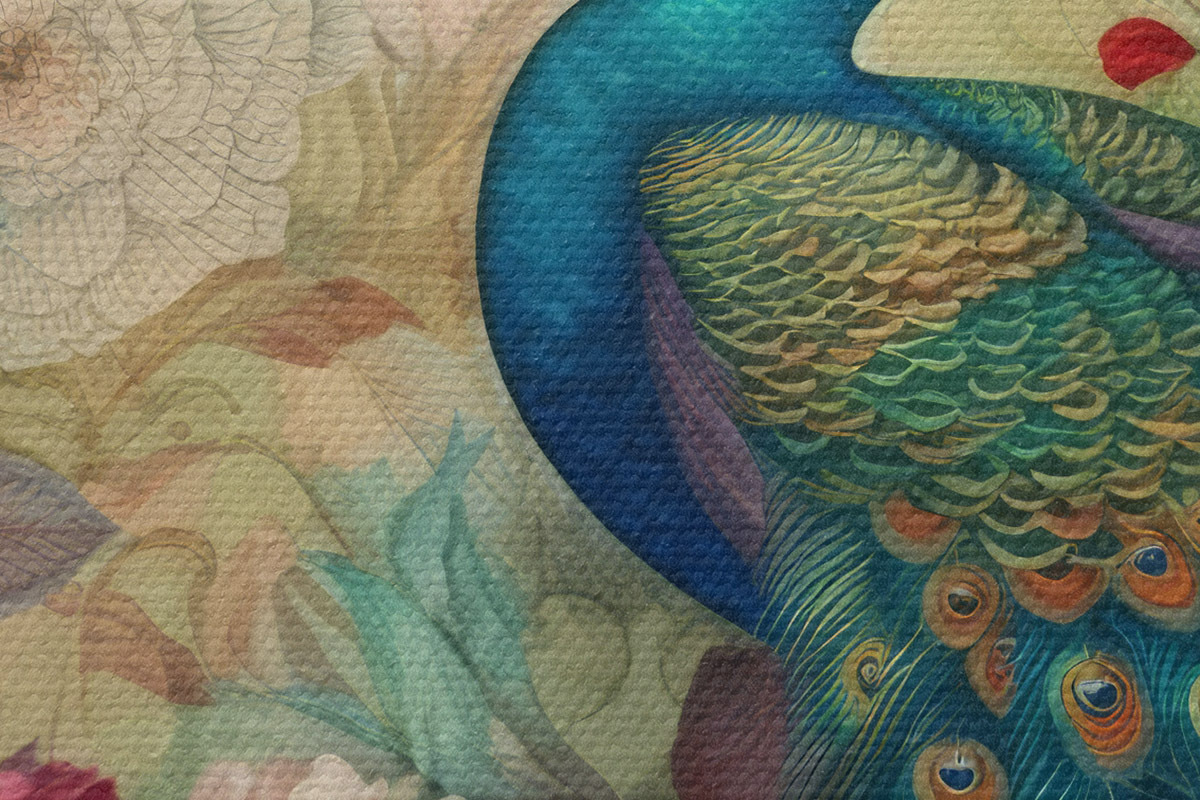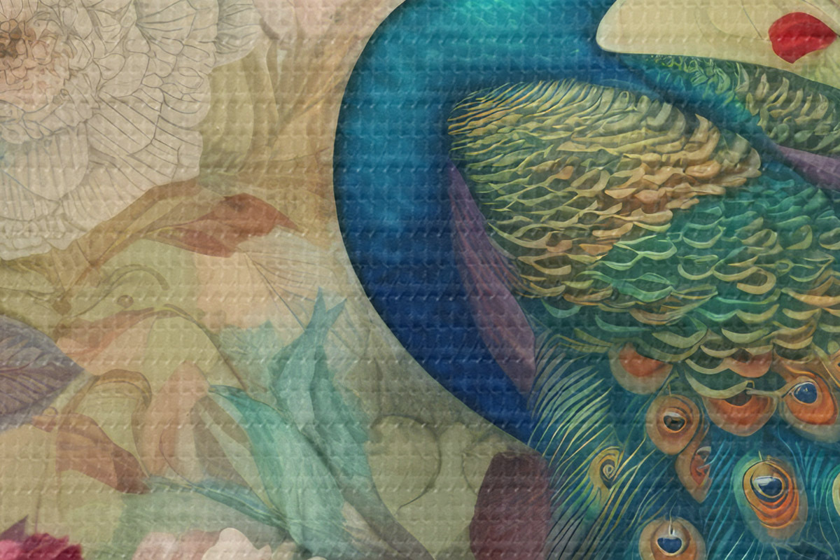 Runde Wandbilder Pfau in Blumen im Vintage-Stil Nr r34869