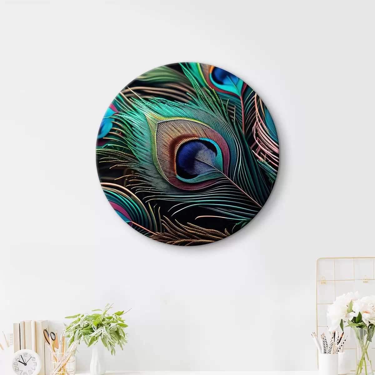 Runde Wandbilder Leuchtende Pfauenfedern Nr r34871