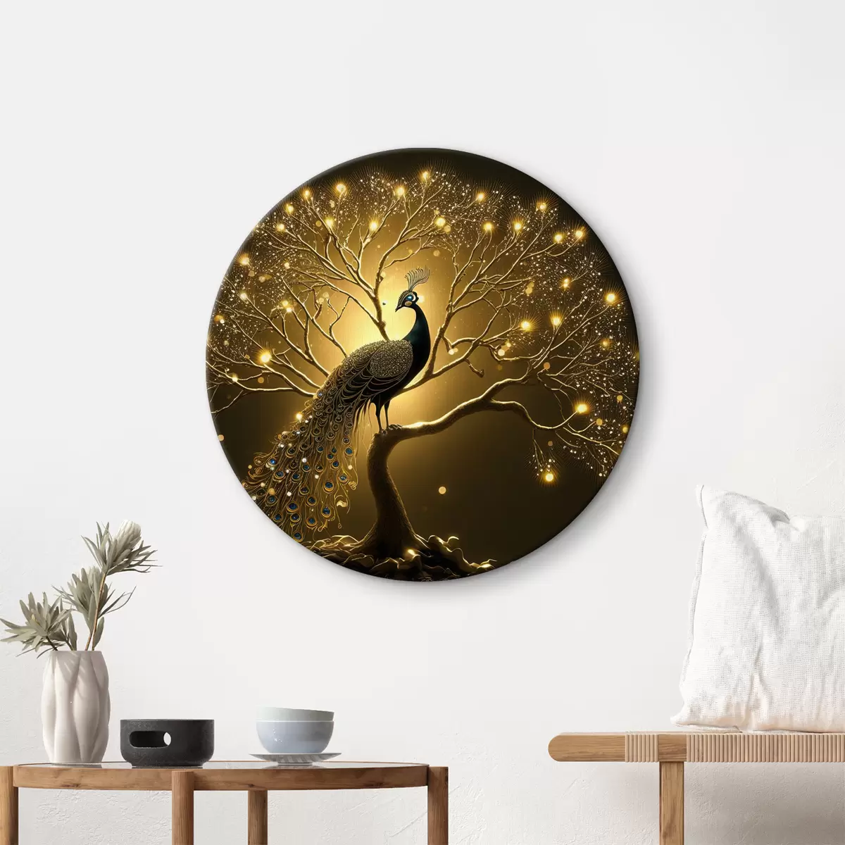 Runde Wandbilder Pfau auf einem blühenden Baum Nr r34876