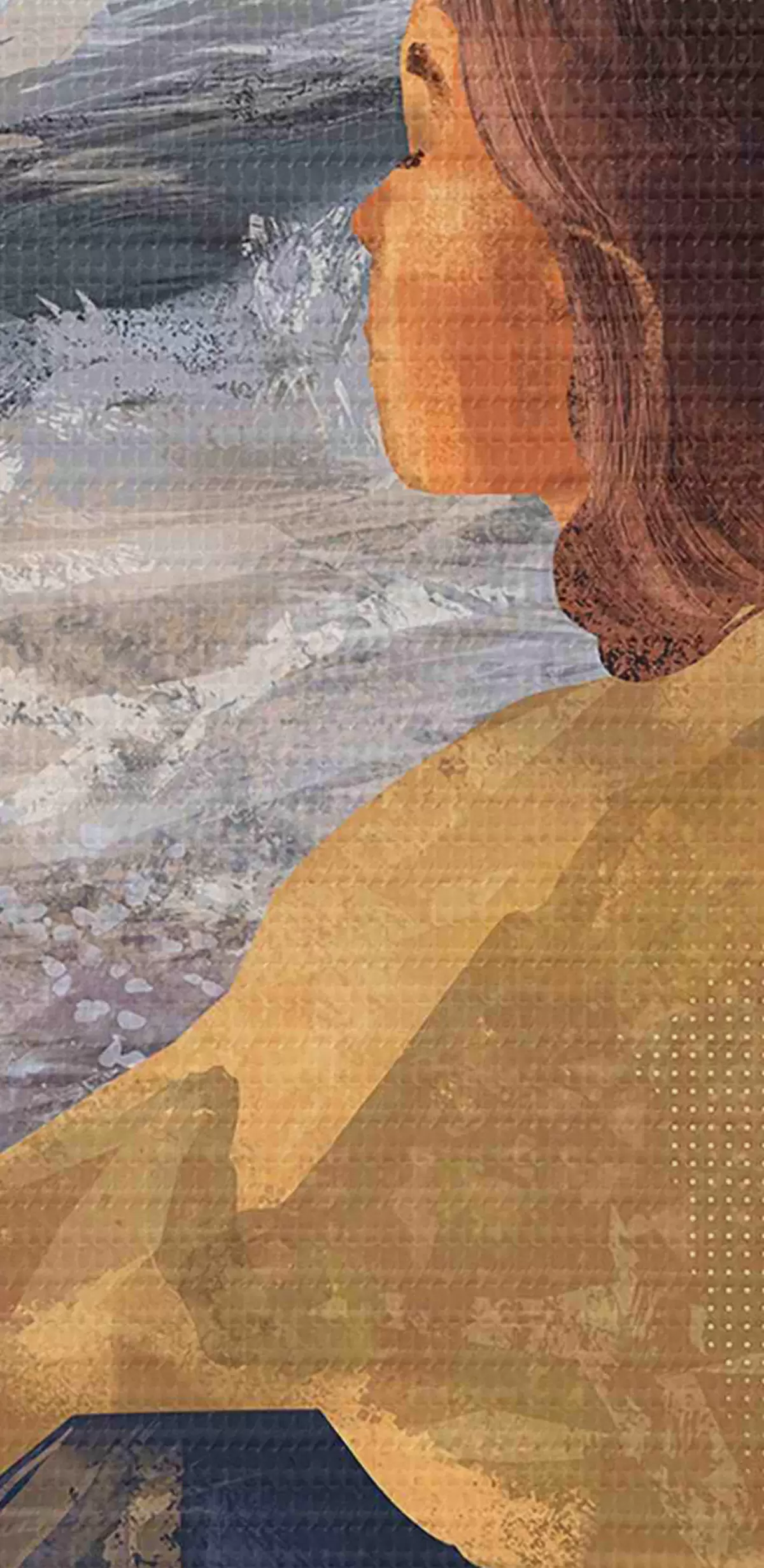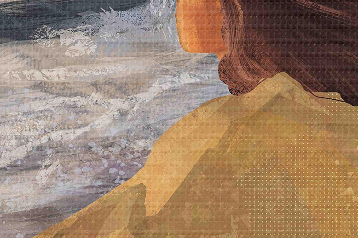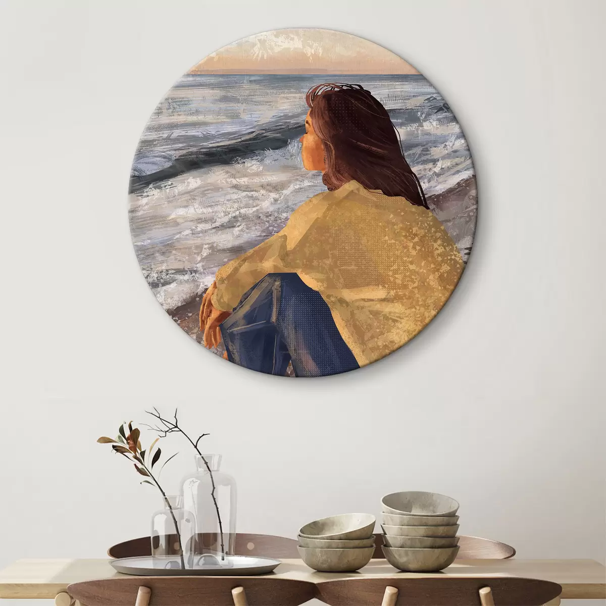 Runde Wandbilder Frau am Meer, die den Wellen nachsieht r35317