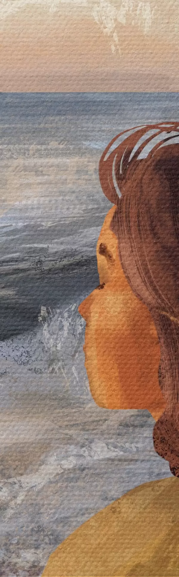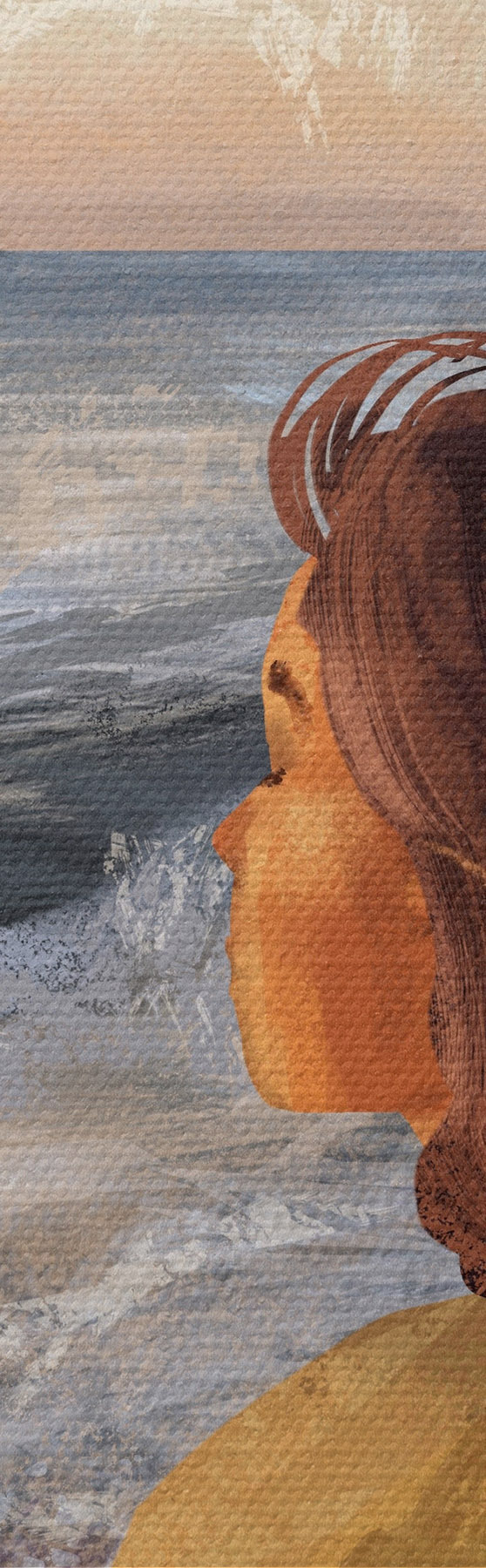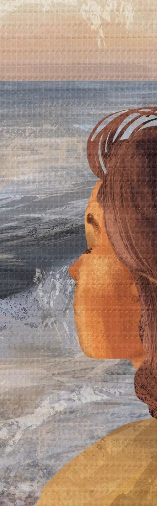 Runde Wandbilder Frau am Meer, die den Wellen nachsieht r35317
