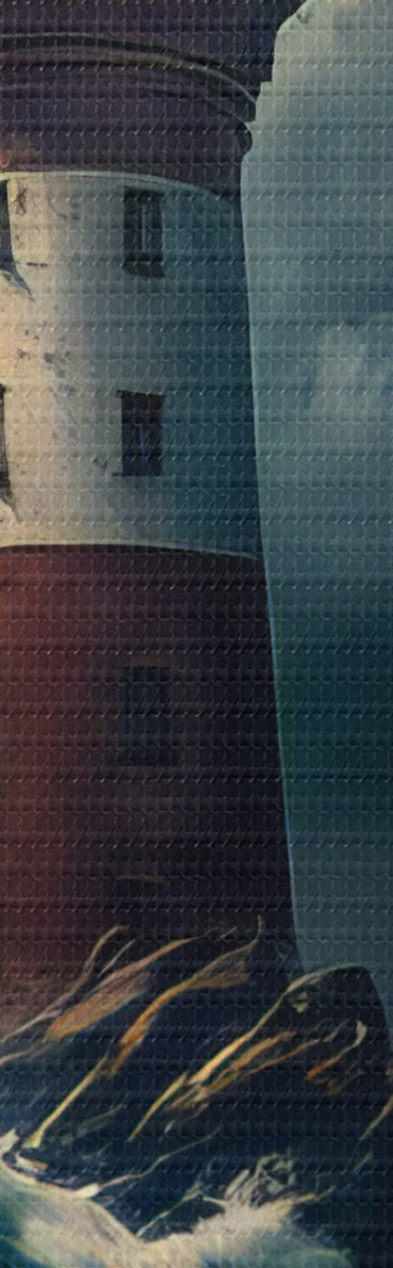 Runde Wandbilder Malerischer Leuchtturm auf einer einsamen Insel während eines Sturms Nr r35349