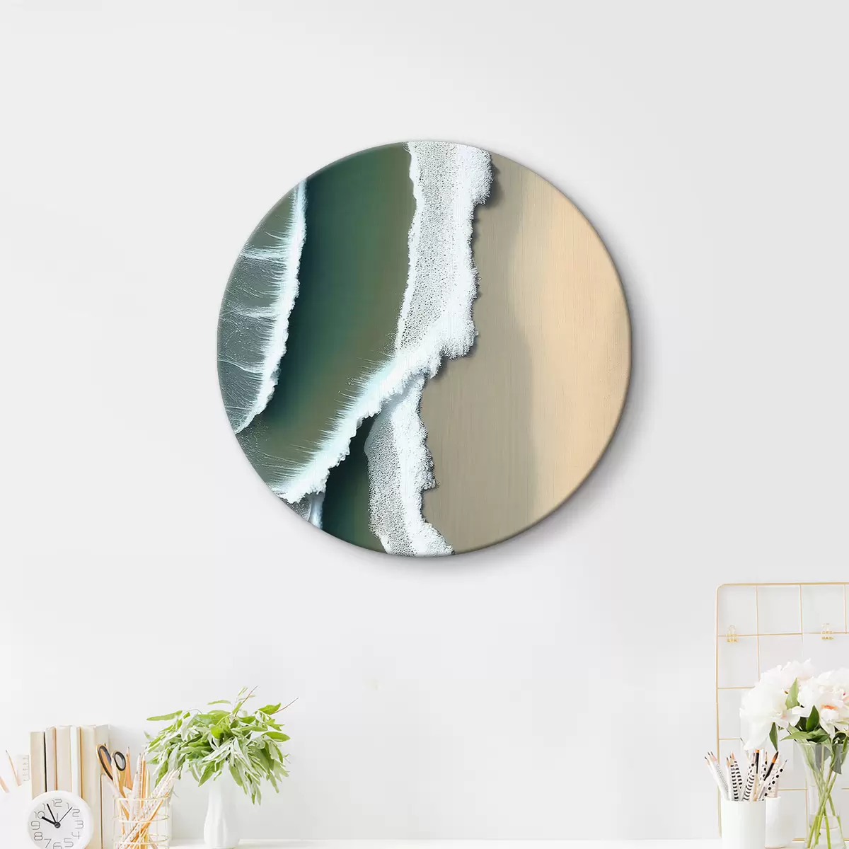 Runde Wandbilder Meeresschaum auf dem Sandstrand Nr r35434
