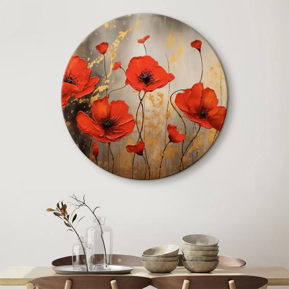 Runde Wandbilder Mohnblumen auf einem braunen abstrakten Hintergrund Nr r35515