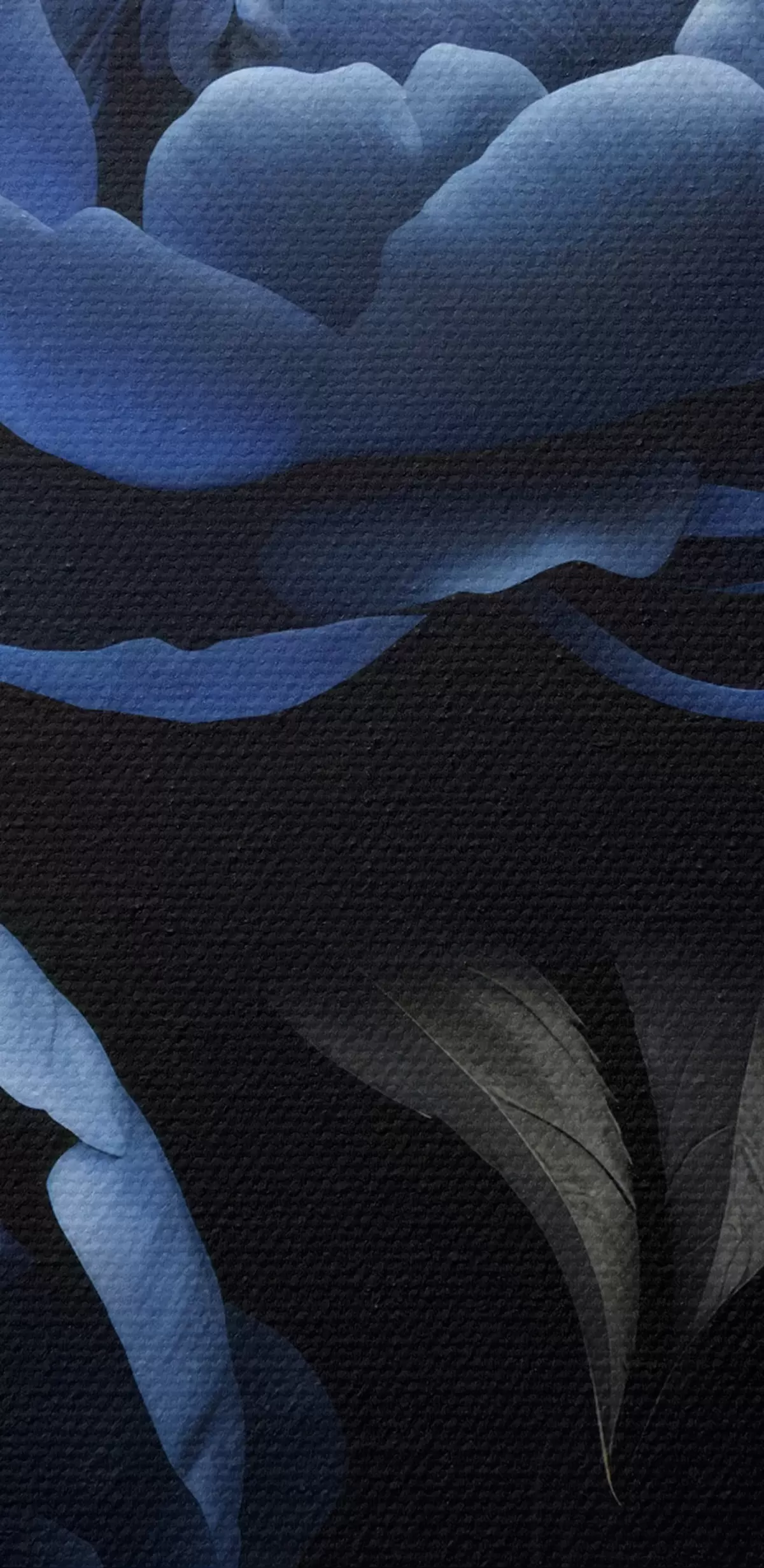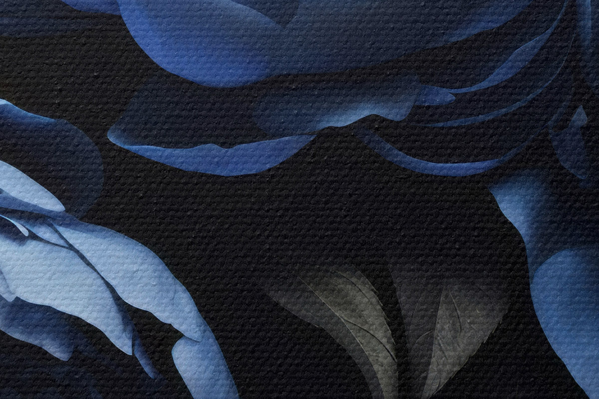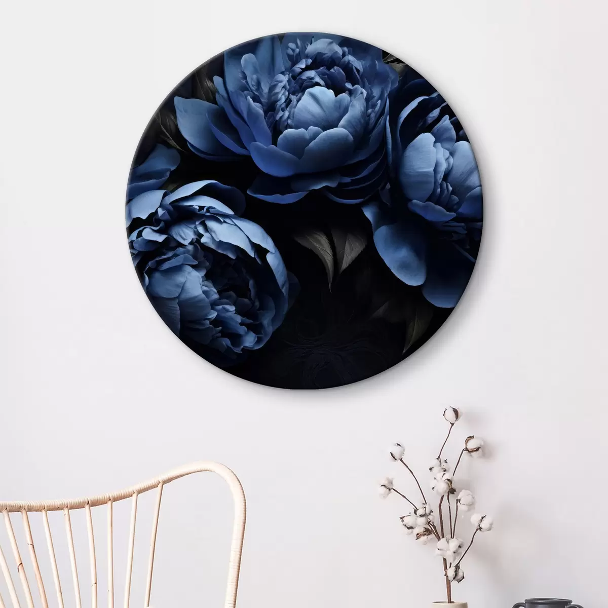 Runde Wandbilder Blaue Pfingstrosen auf schwarzem Hintergrund r35571