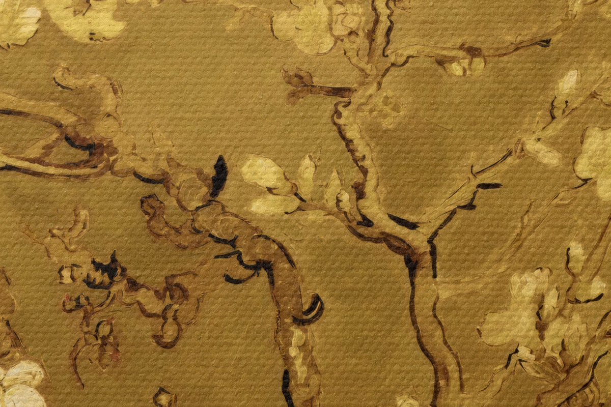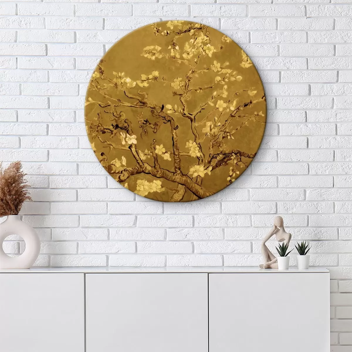 Runde Wandbilder Blühende Mandelzweige in Goldtönen Nr r35609