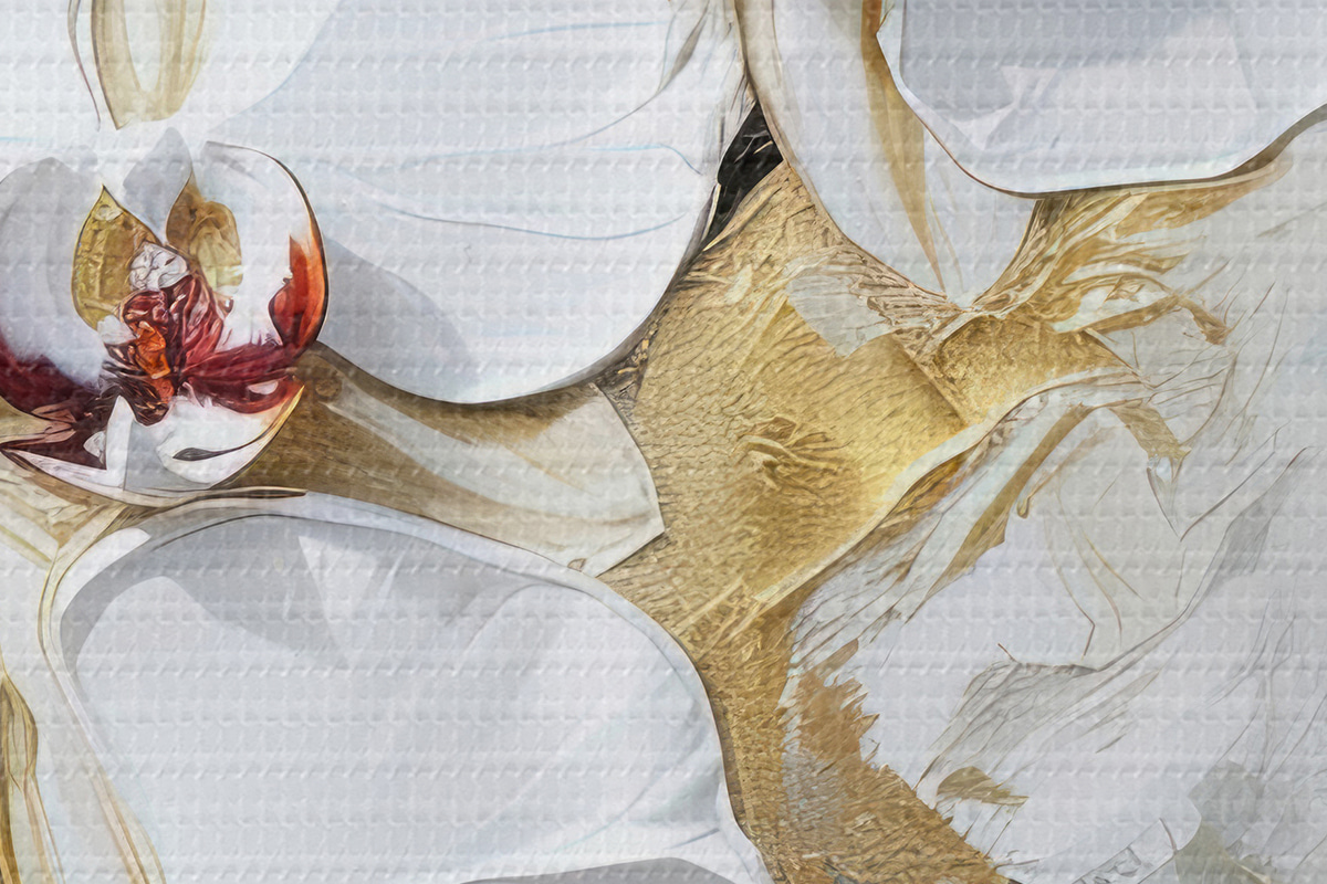 Runde Wandbilder Orchideen-Symphonie mit abstrakten Pinselstrichen r35904