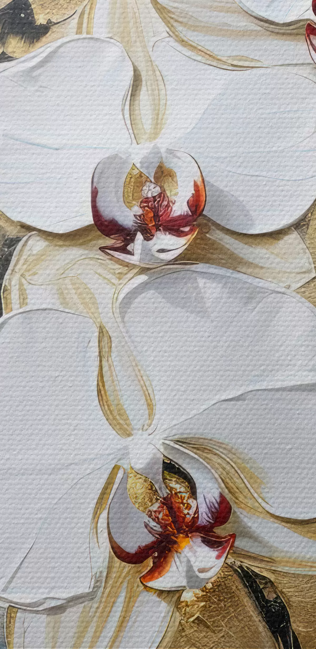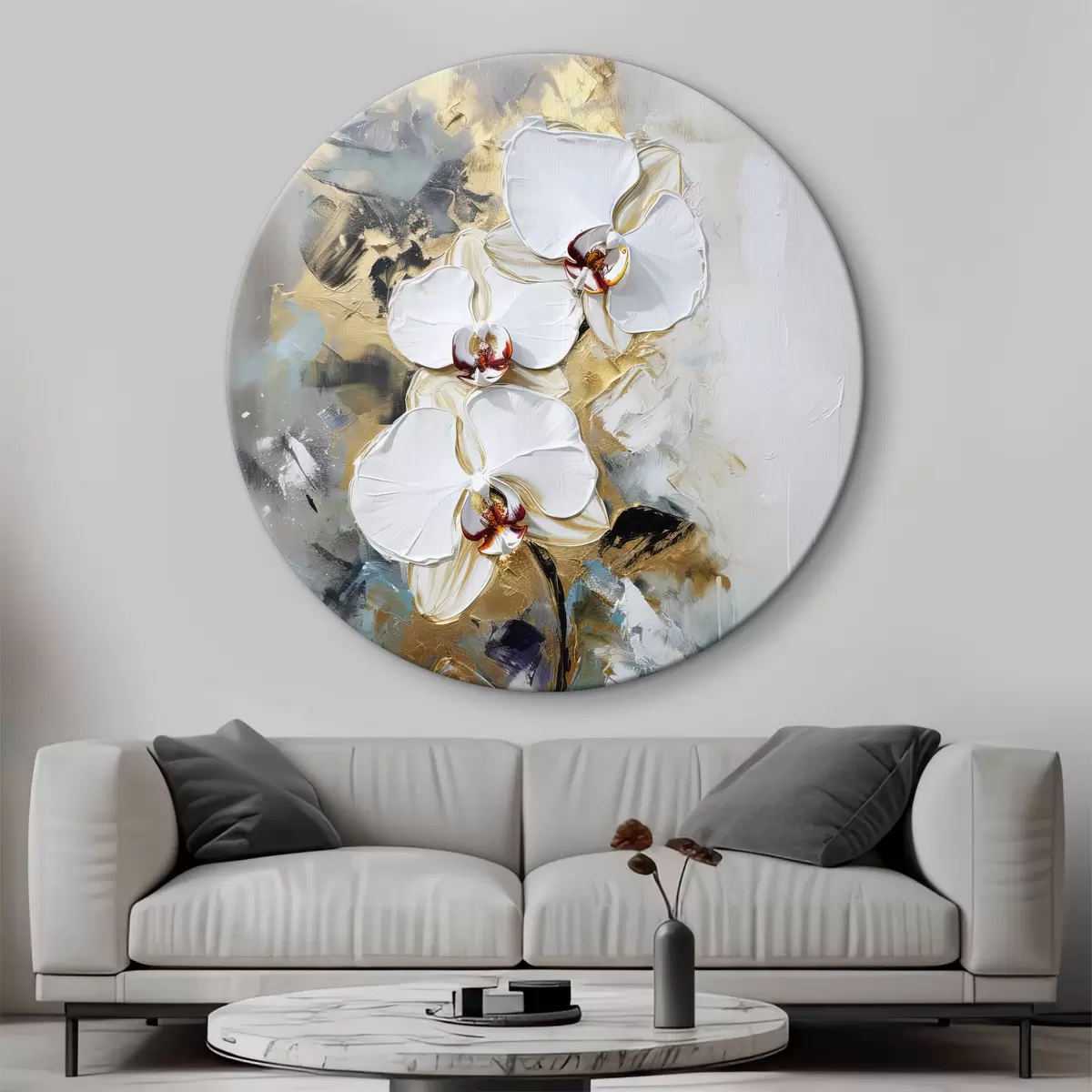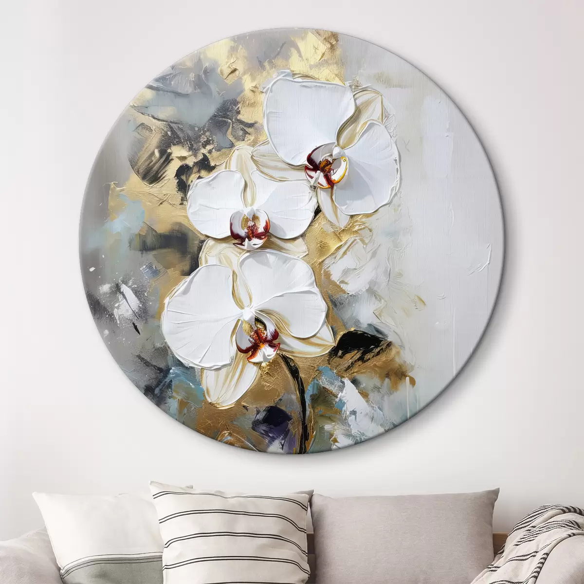 Runde Wandbilder Orchideen-Symphonie mit abstrakten Pinselstrichen r35904