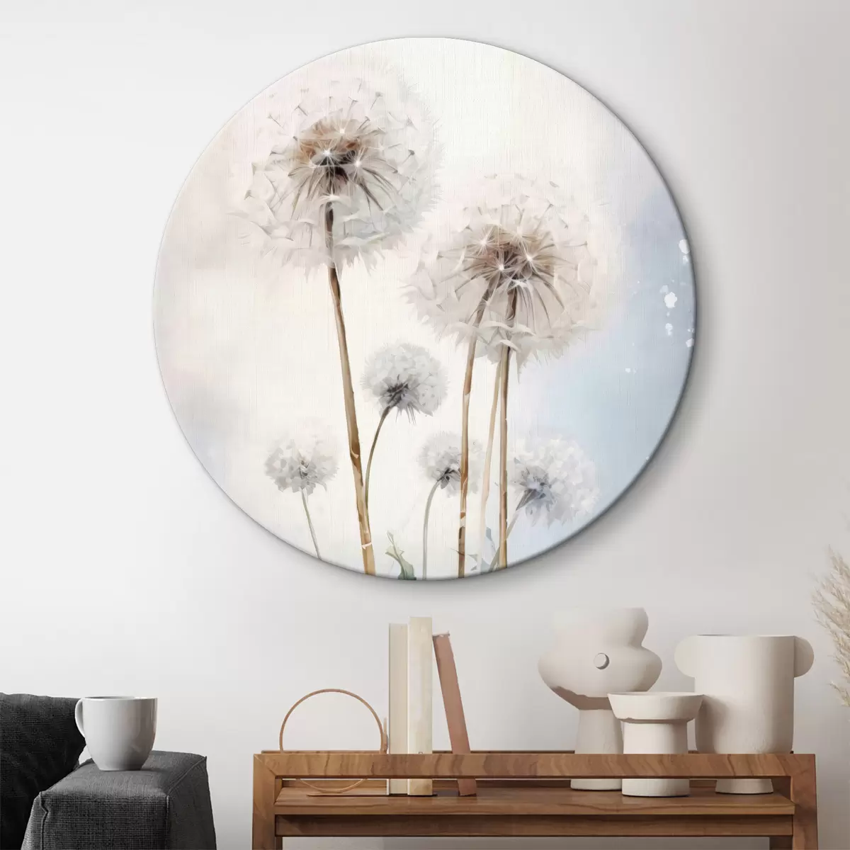 Runde Wandbilder Löwenzahnträume in zarten Pastelltönen r35907