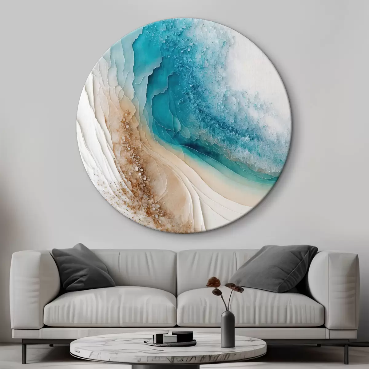 Runde Wandbilder Türkisfarbene und weiße fließende Kunst Nr r36029