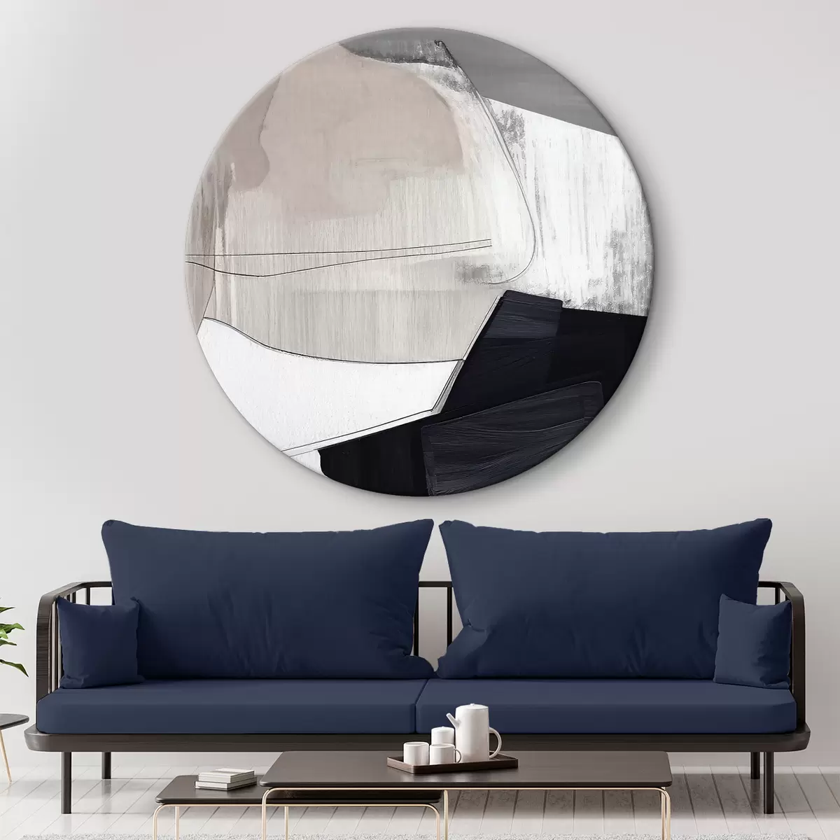 Runde Wandbilder Abstrakte Kunst in Schwarz-Weiß-Tönen r36039