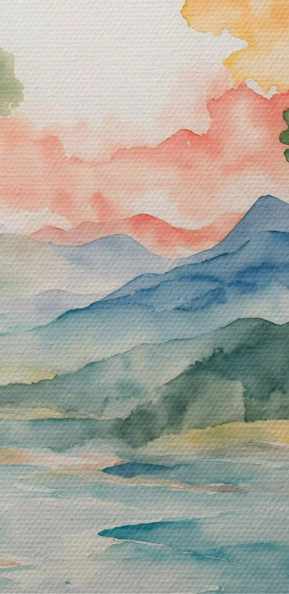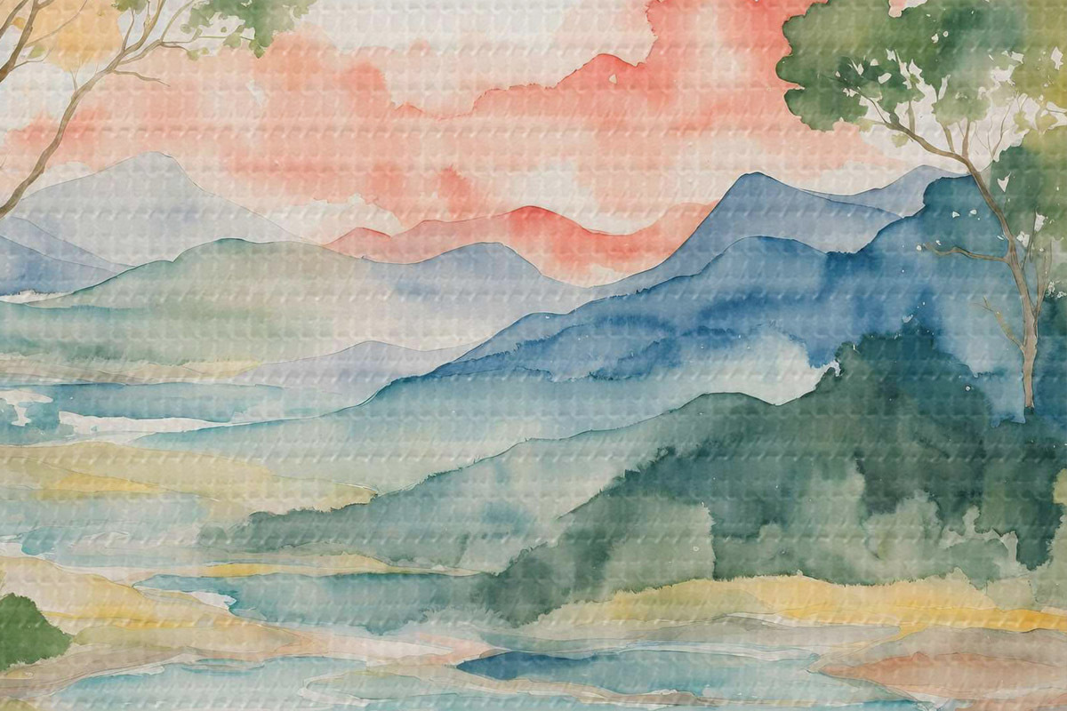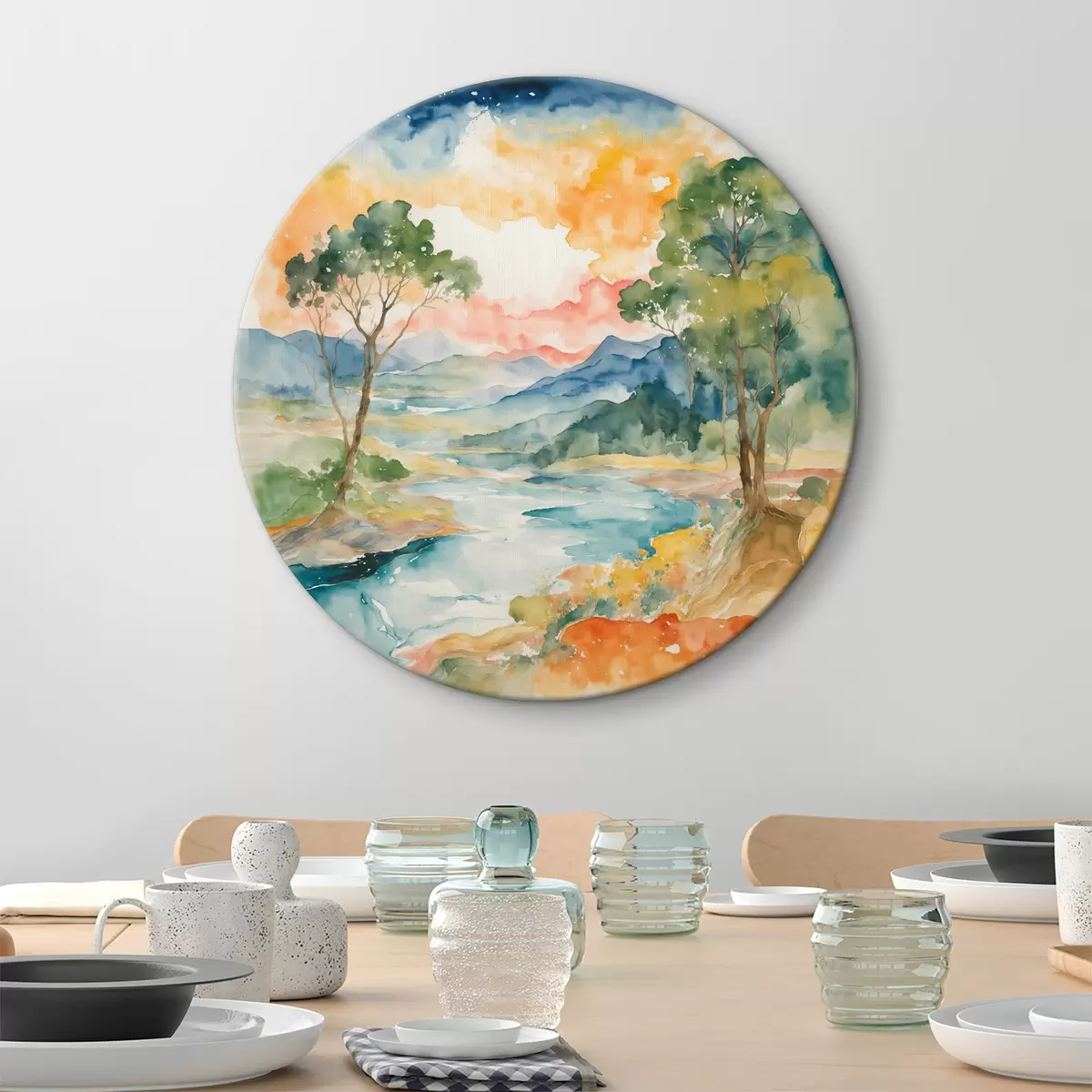 Runde Wandbilder Fluss und Bäume in Aquarell r36054