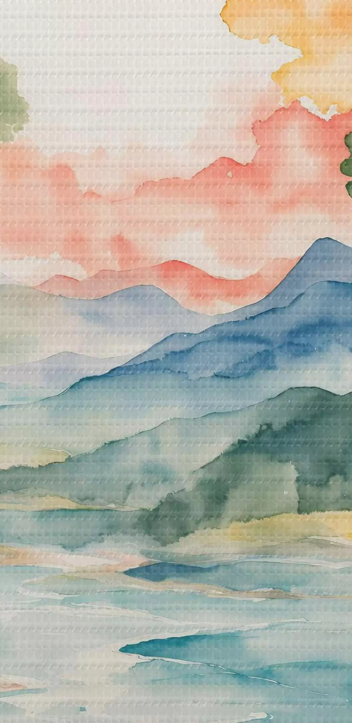 Runde Wandbilder Fluss und Bäume in Aquarell Nr r36054