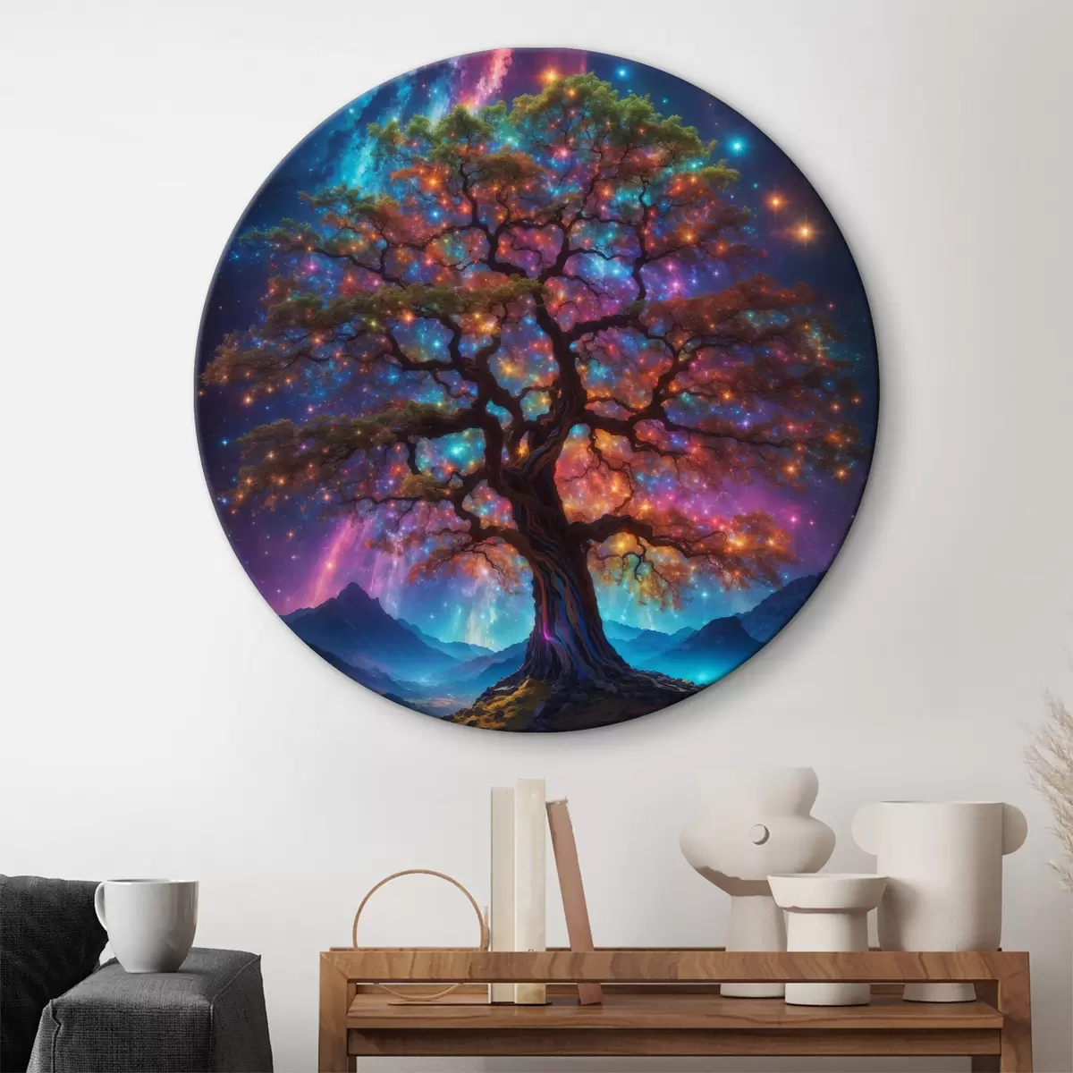 Runde Wandbilder Ein Baum vor dem Sternenhimmel Nr r36059
