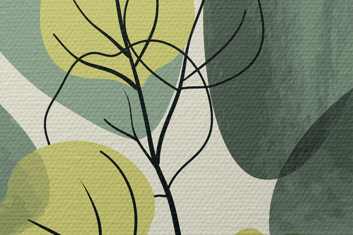 Runde Wandbilder Aquarellzeichnung von Boho-Laub r36106