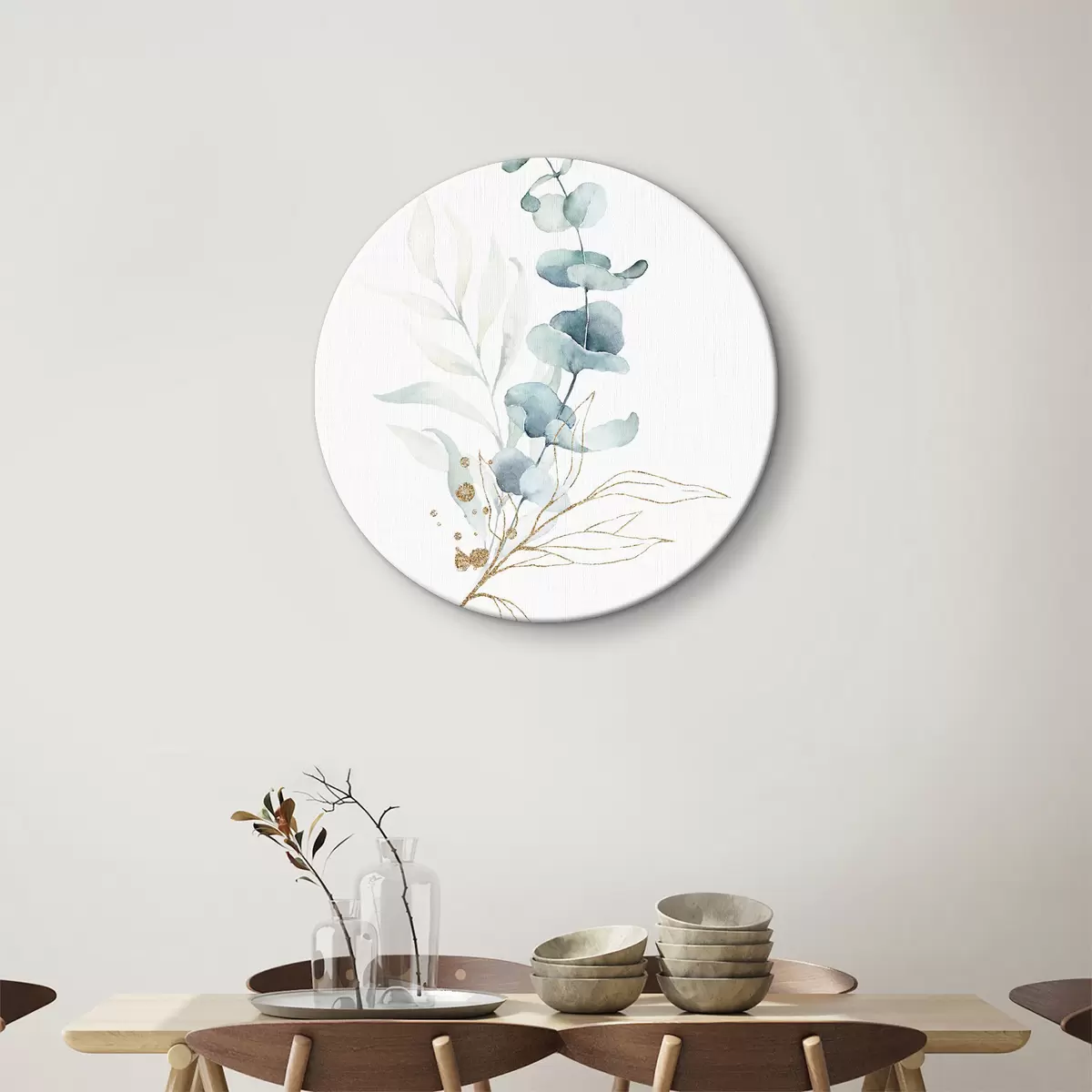 Runde Wandbilder Abstrakte Aquarellzeichnung von Zweigen mit blauen Blättern r36139
